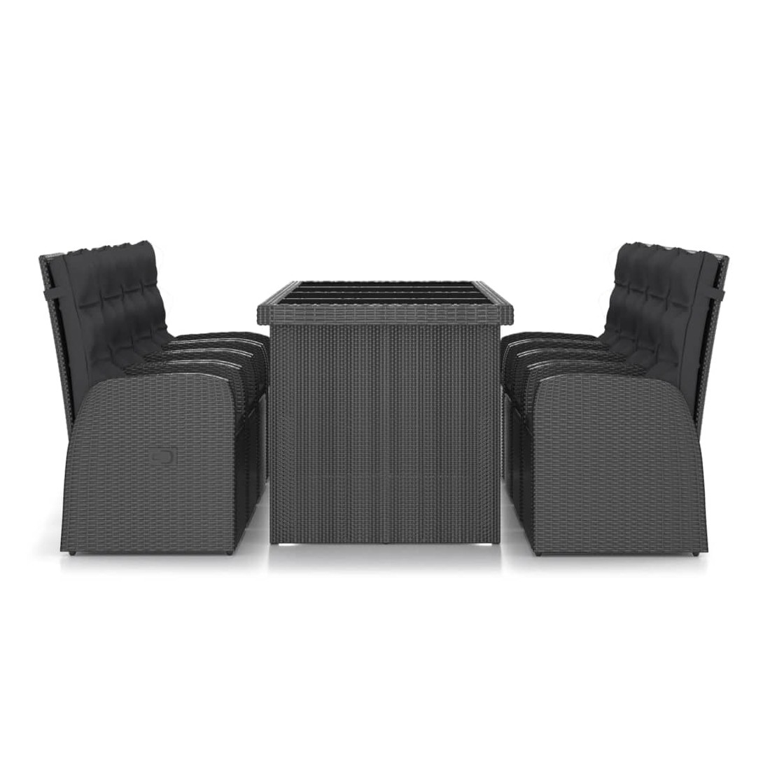 vidaXLCet ensemble de salle à manger d'extérieur, au design élégant et contemporain, est un supplément accrocheur à votre espace de vie extérieur. Cet ensemble de meubles de jardin est doté d'un cadre robuste en acier enduit de poudre, très stable et durable. La résine tressée rend cet ensemble de salle à manger facile à nettoyer, résistant à l'usure et adapté à une utilisation à l'extérieur. Le dessus de table en verre est facile à nettoyer avec un chiffon humide. Les chaises inclinables offrent le plus grand confort d'assise et un excellent soutien. Le dossier est facilement réglable selon votre désir en utilisant le bouton au côté. De plus, les coussins d'assise et de dossier épais et moelleux sont également très confortables. Remarque : nous vous recommandons de couvrir l'ensemble pendant la pluie, la neige et le gel pour sa longue durée de vie.