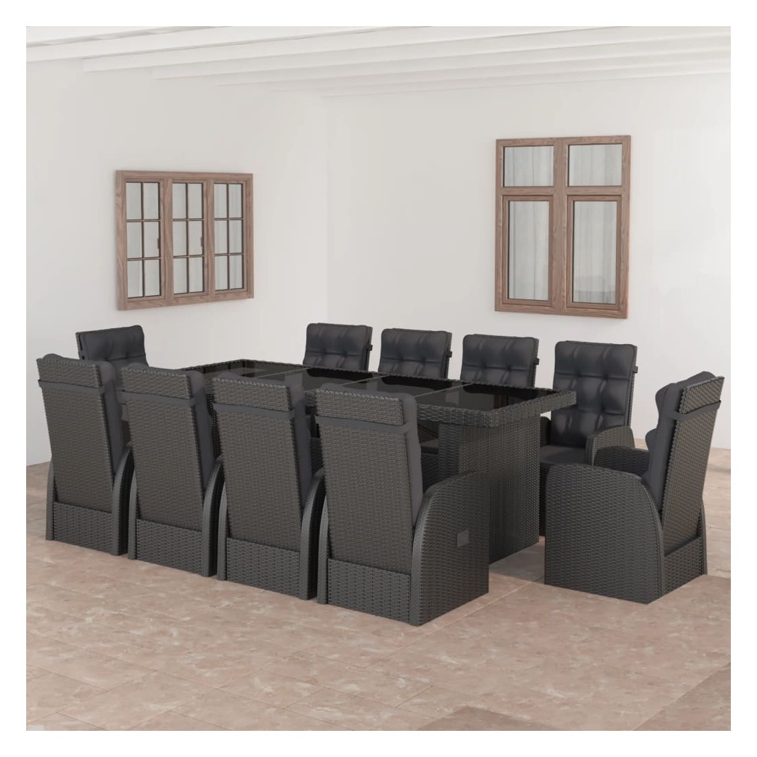 Salon de jardin 11 pcs avec coussins résine tressée noir