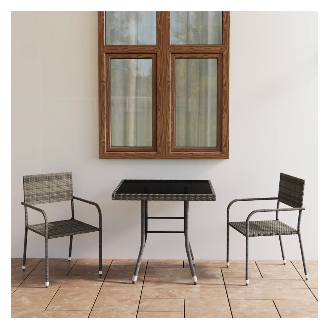 Créez un aspect convaincant et cohérent dans votre espace extérieur avec cet ensemble de salle à manger de jardin en résine tressée ! La table et les chaises à dîner sont en résine tressée sans entretien, ce qui les rend faciles à nettoyer avec un chiffon humide et parfaites pour une utilisation en plein air. Grâce à leurs cadres en acier, la table et les chaises sont stables et sûres. Le dessus de table en verre ajoute également une touche luxueuse à votre espace extérieur. De plus, ces chaises d'extérieur sont légères et peuvent être empilées pour économiser de l'espace lorsqu'elles ne sont pas utilisées. Remarque : Nous vous recommandons de couvrir l'ensemble de salle à manger pendant la pluie, la neige et le gel pour une utilisation durable.