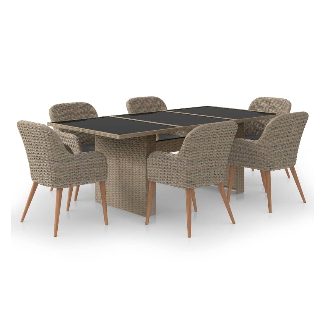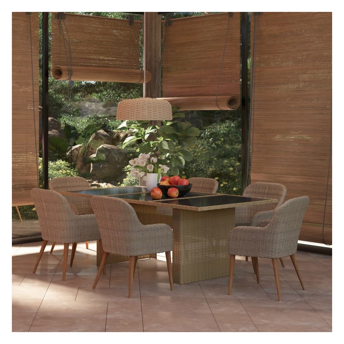Cet ensemble de salle à manger de jardin au design élégant est un excellent choix pour dîner ou vous détendre dans le jardin ou sur la terrasse ! L'ensemble de meubles d'extérieur est doté d’un cadre solide en acier enduit de poudre qui le rend très stable et durable. Grâce à la résine tressée résistante aux intempéries, cet ensemble de salle à manger est facile à nettoyer, résistant à l'usure et convient à une utilisation quotidienne à l'extérieur. Le dessus de table en verre est également facile à nettoyer avec un chiffon humide. De plus, les coussins de siège doux inclus ajoutent également du confort supplémentaire à l'ensemble. Les housses de coussin en polyester à faible entretien peuvent être facilement retirées et lavées. Remarque : nous vous recommandons de couvrir l'ensemble pendant la pluie, la neige et le gel.