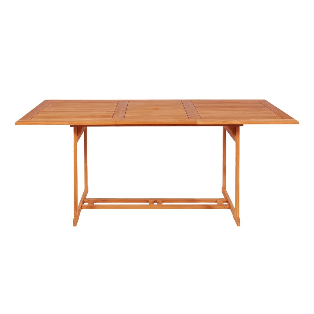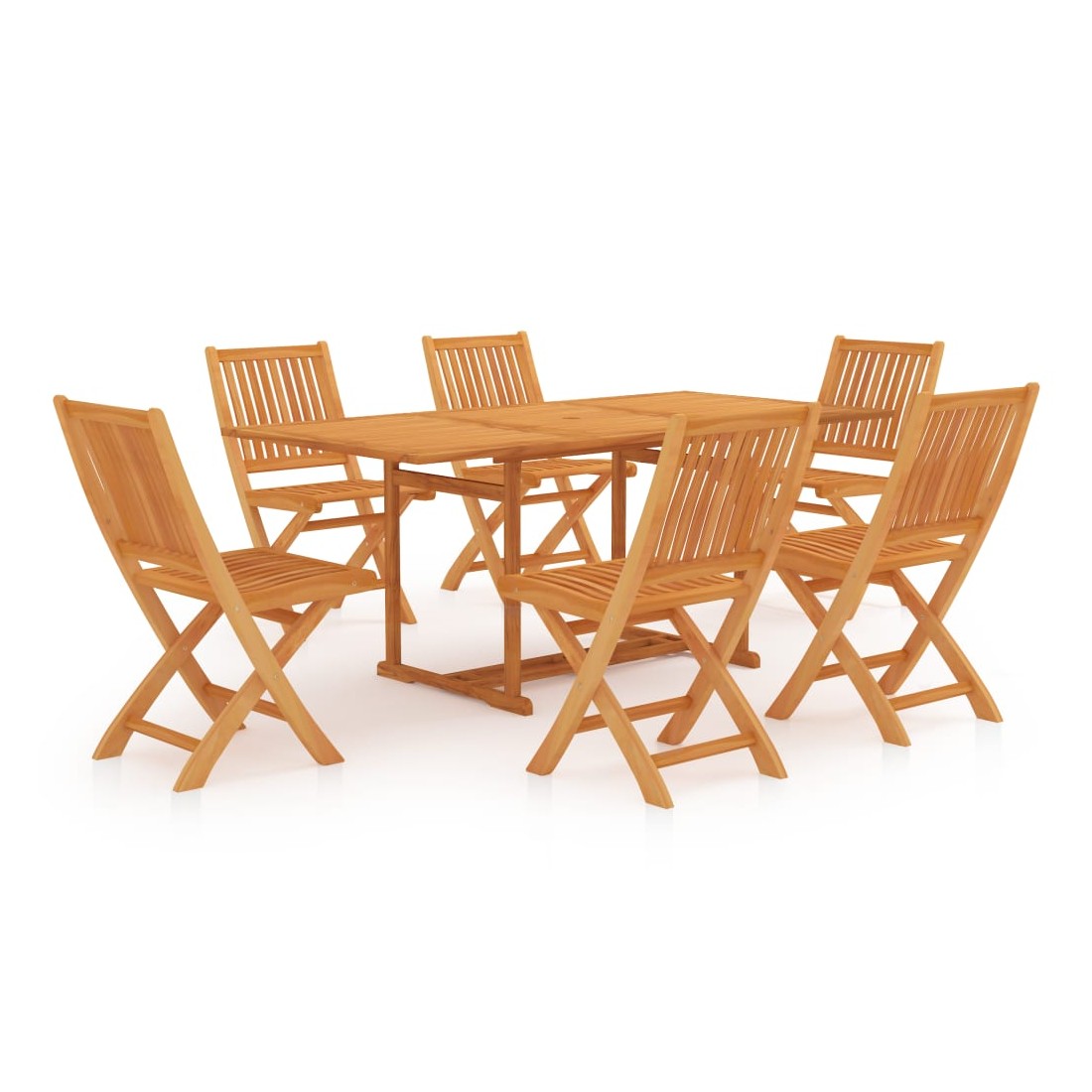 Cet ensemble de jardin en bois est parfait pour vos repas ou pour vous détendre dans le jardin ou sur le patio. Il est également idéal pour une utilisation à l'intérieur. Fabriquée en bois dur de teck extrêmement durable, cette pièce de meuble en teck a été chevronnée, séchée au four puis finement poncée pour lui donner un aspect très lisse. Le bois de teck est connu pour sa résistance exceptionnelle aux intempéries, ce qui le rend bien plus adapté aux meubles de jardin que tout autre type de bois. Le bois de teck est le choix idéal si vous souhaitez acheter une pièce de meubles de jardin durable. L’ensemble est appliqué avec une belle finition pour donner au bois une couleur chaude. La table comprend un trou pour un parasol afin de vous protéger du soleil. Les sièges et les dossiers incurvés des chaises peuvent bien s’adapter à votre corps. Avec un design pliable, les chaises peuvent être pliées pour économiser de l’espace lorsqu'elles ne sont pas utilisées. Elles sont également légères et faciles à déplacer. L’ensemble de meubles vous offre un confort et une grande commodité pour passer du temps avec votre famille et vos amis. De plus, cet ensemble est également facile à nettoyer avec un chiffon humide.