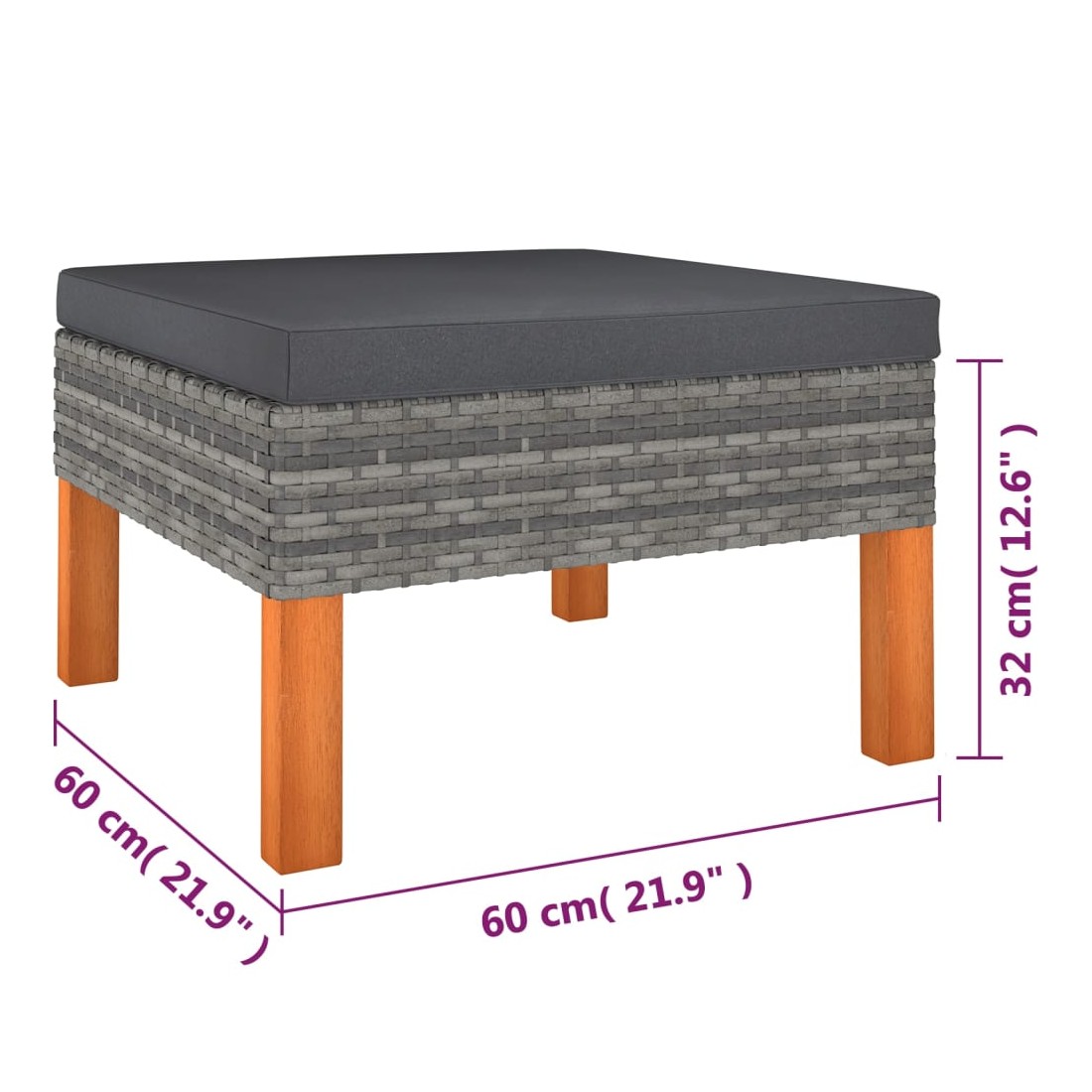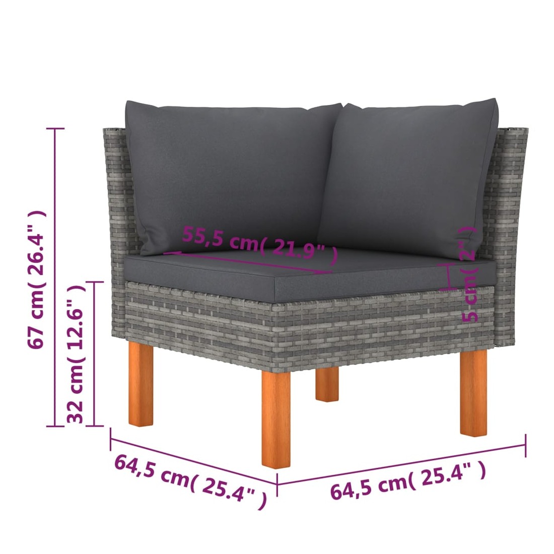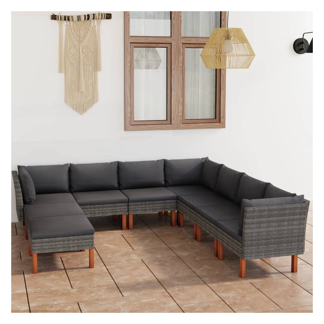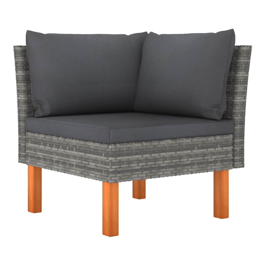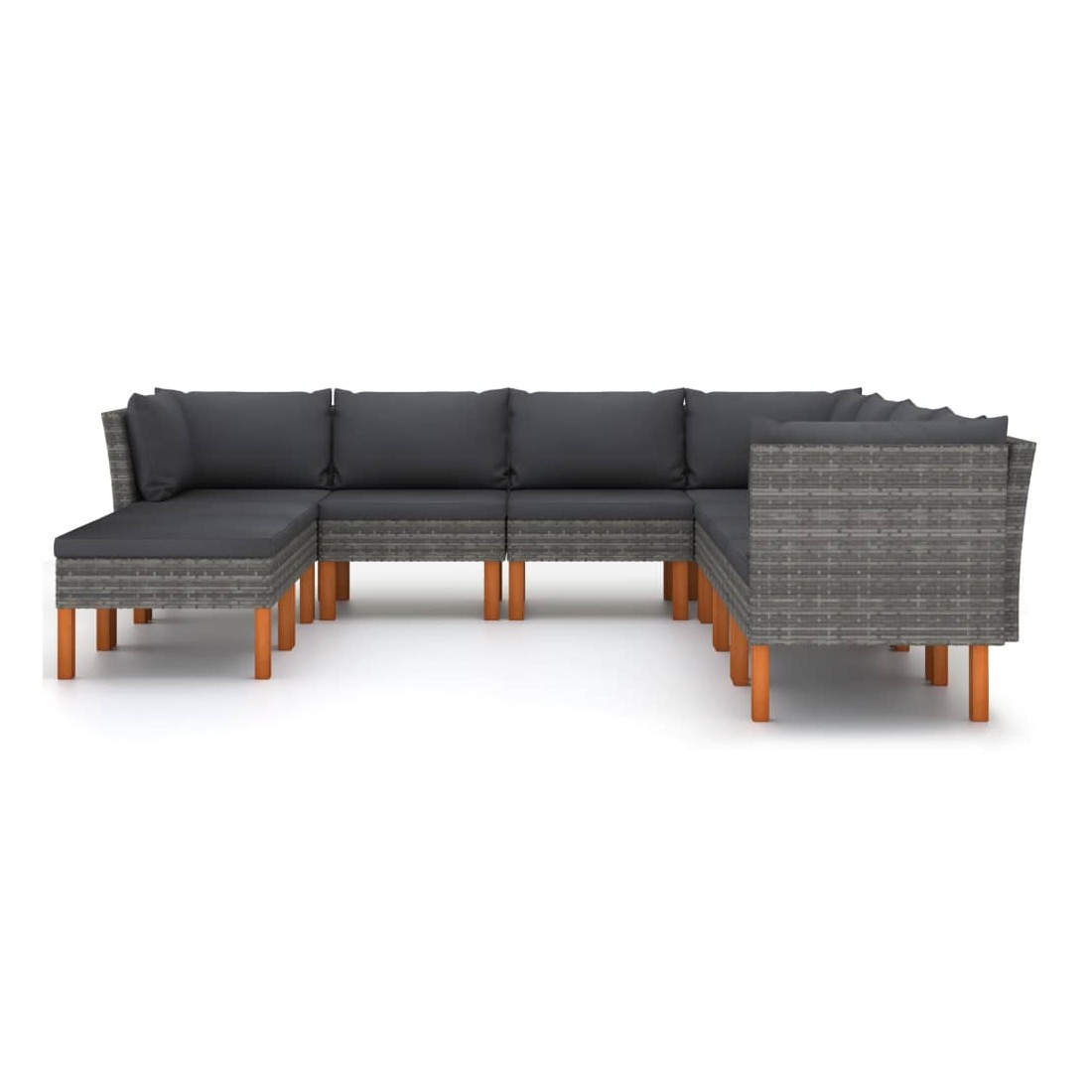 Cet ensemble de salon de jardin élégant et confortable, est un choix idéal pour vous détendre et profiter du beau temps, faire une sieste ou discuter avec votre famille ou vos amis. Doté d’un cadre en acier enduit de poudre recouvert de résine tressée, l'ensemble de canapé est résistant aux intempéries et facile à nettoyer. Les pieds en bois d’eucalyptus massif contribuent à sa robustesse et à sa stabilité. L'ensemble de salon est livré avec des coussins rembourrés pour un confort suprême. Dotée d'une fermeture éclair, la housse des coussins est amovible et lavable. De plus, cet ensemble de canapés d'extérieur peut être facilement déplacé pour s’adapter à n’importe quelle configuration grâce à sa construction légère. Remarque : afin de prolonger la durée de vie des meubles d'extérieur, nous vous recommandons de les protéger avec une housse imperméable.