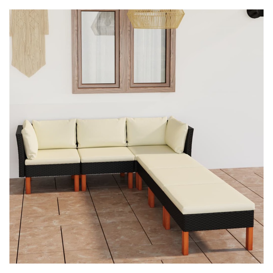 Cet ensemble de salon de jardin élégant et confortable, est un choix idéal pour vous détendre et profiter du beau temps, faire une sieste ou discuter avec votre famille ou vos amis. Doté d’un cadre en acier enduit de poudre recouvert de résine tressée, l'ensemble de canapé est résistant aux intempéries et facile à nettoyer. Les pieds en bois d’eucalyptus massif contribuent à sa robustesse et à sa stabilité. L'ensemble de salon est livré avec des coussins rembourrés pour un confort suprême. Dotée d'une fermeture éclair, la housse des coussins est amovible et lavable. De plus, cet ensemble de canapés d'extérieur peut être facilement déplacé pour s’adapter à n’importe quelle configuration grâce à sa construction légère. Remarque : afin de prolonger la durée de vie des meubles d'extérieur, nous vous recommandons de les protéger avec une housse imperméable.