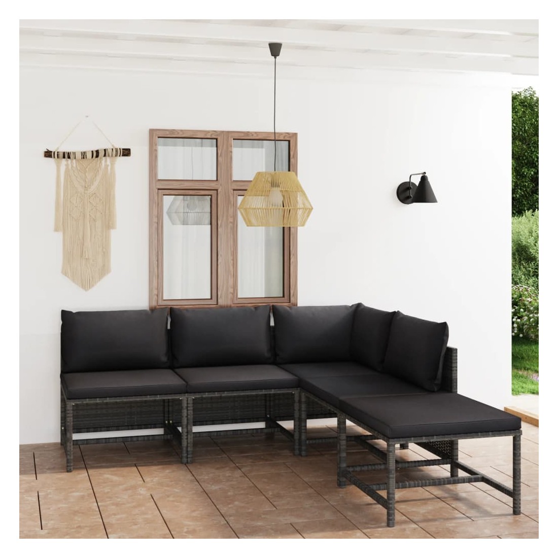 Créez un coin salon relaxant avec cet ensemble de salon de jardin en résine tressée. Cet ensemble de salon de jardin confortable, doté d’un cadre en acier enduit de poudre recouvert de résine tressée, est robuste et facile à nettoyer. Les coussins bien rembourrés ajoutent un confort supplémentaire pendant votre temps de détente. Les housses de coussin sont amovibles et lavables avec des fermetures éclair. En outre, le repose-pied peut également servir de table basse pour accueillir vos divers objets de première nécessité. Cet ensemble de salon d'extérieur est facile à déplacer avec une construction légère. Grâce à la conception modulaire, vous pouvez placer l’ensemble dans n’importe quel arrangement selon votre goût. Remarque importante : nous vous recommandons de couvrir le salon pendant la pluie, la neige et le gel pour une utilisation durable.