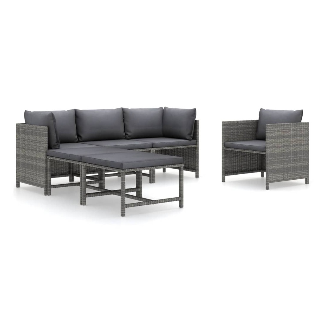 Salon de jardin 6 pcs avec coussins Résine tressée Gris