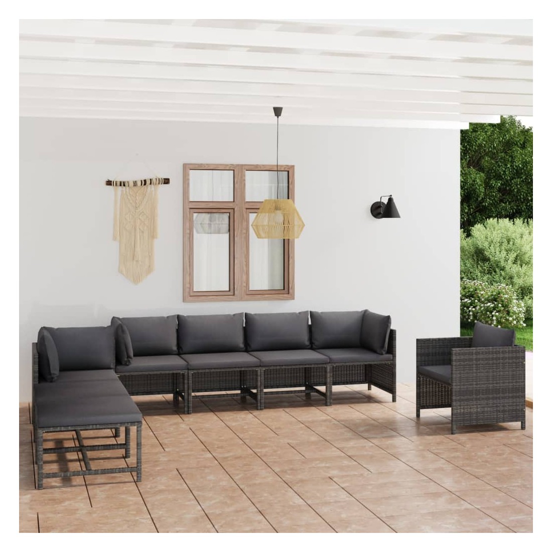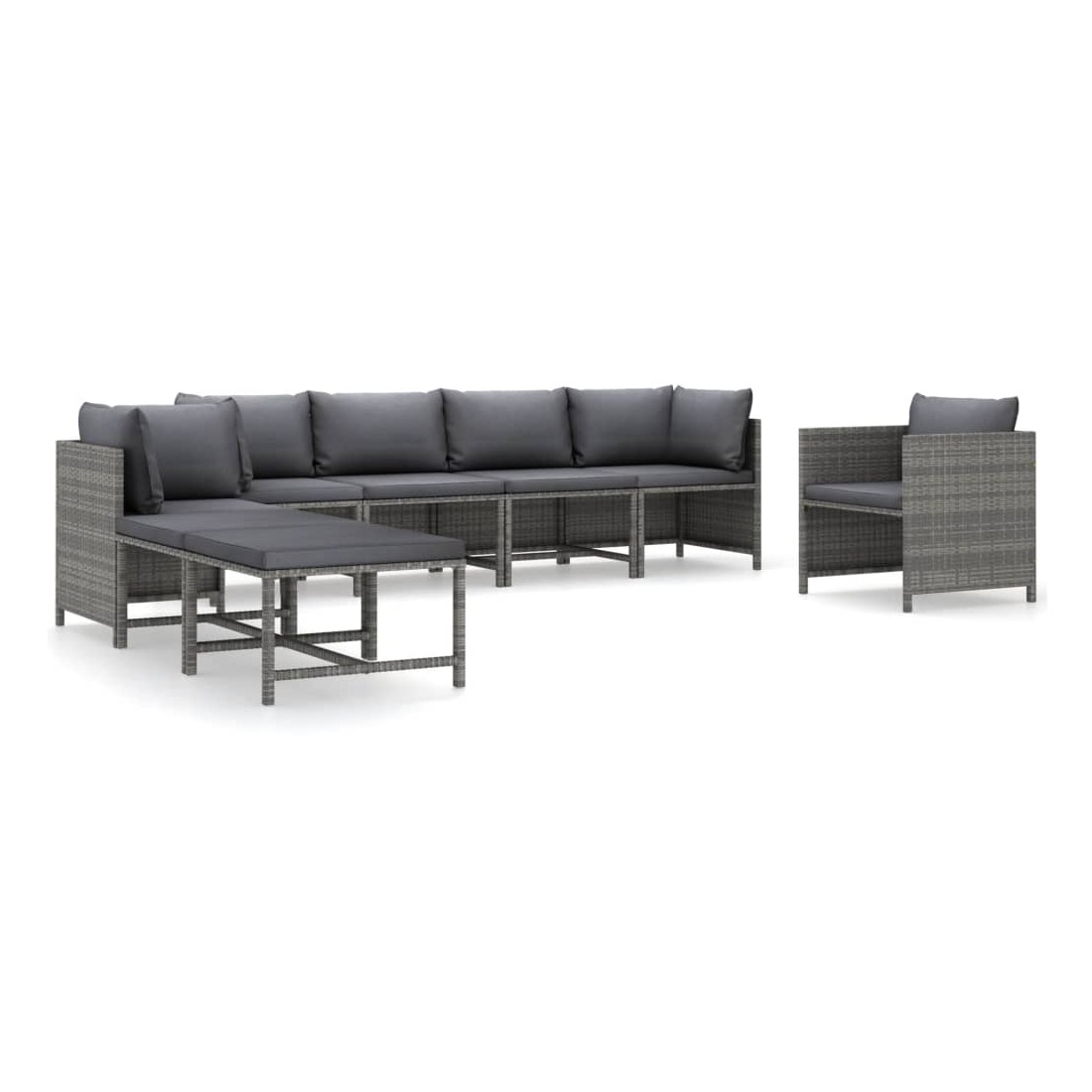 Salon de jardin 8 pcs avec coussins Résine tressée Gris