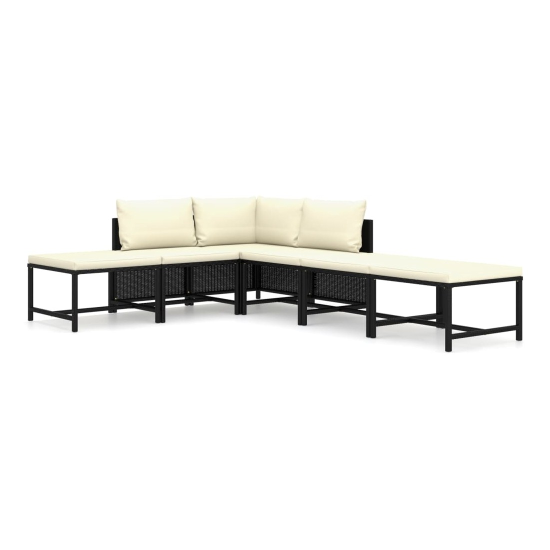 Salon de jardin 6 pcs avec coussins Résine tressée Noir