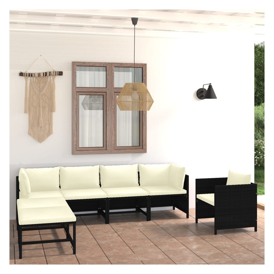 Salon de jardin 7 pcs avec coussins Résine tressée Noir