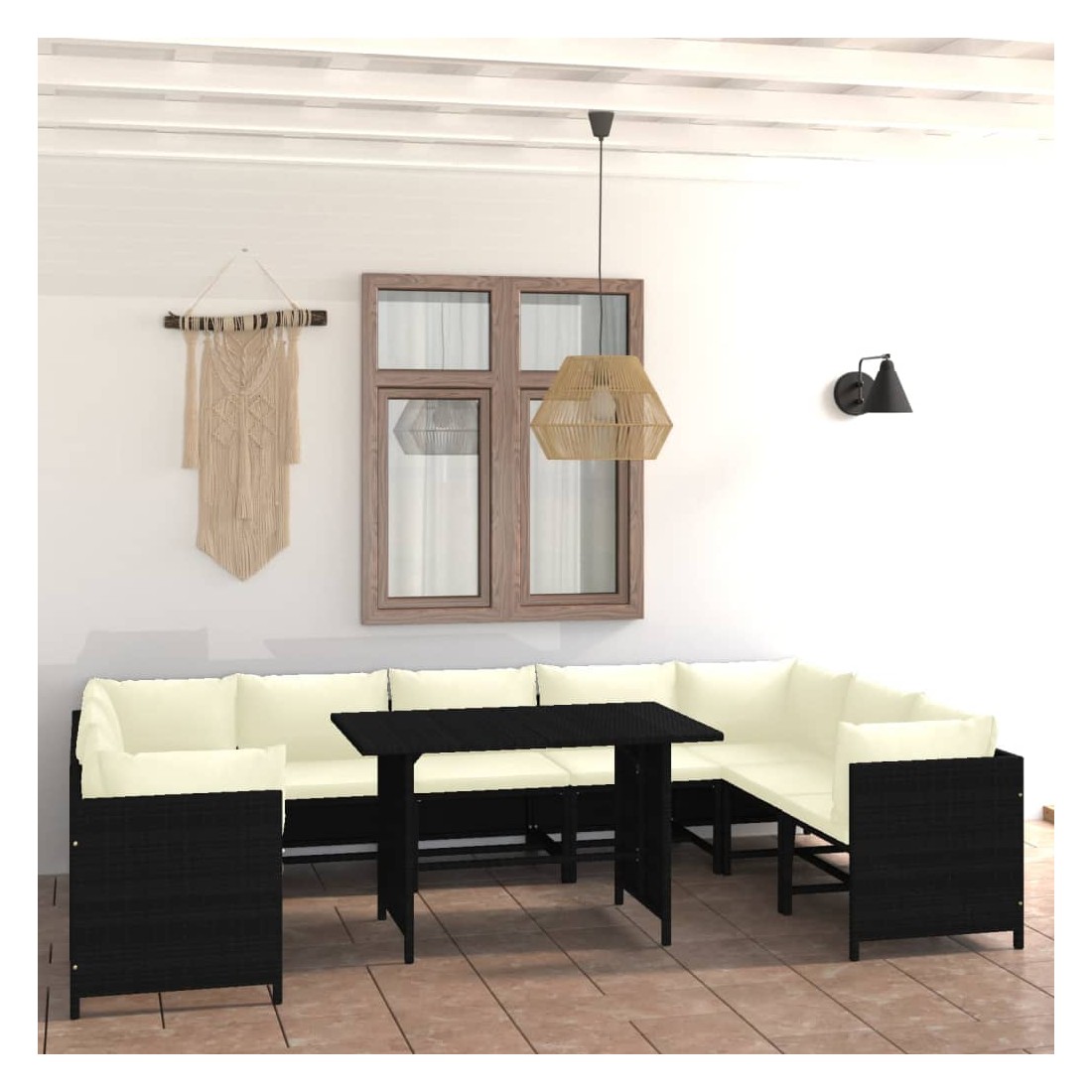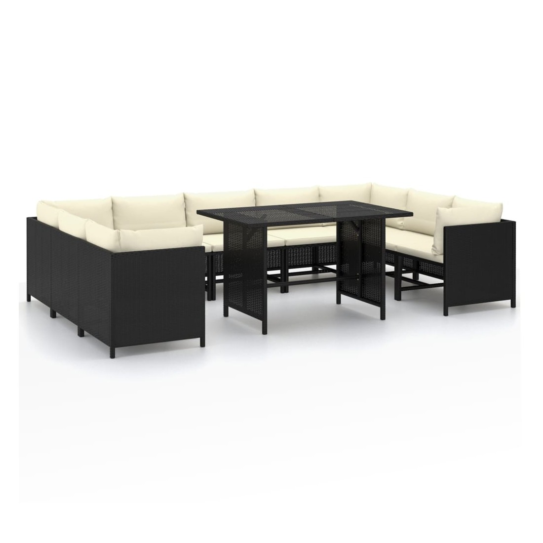 Salon de jardin 10 pcs avec coussins Résine tressée Noir