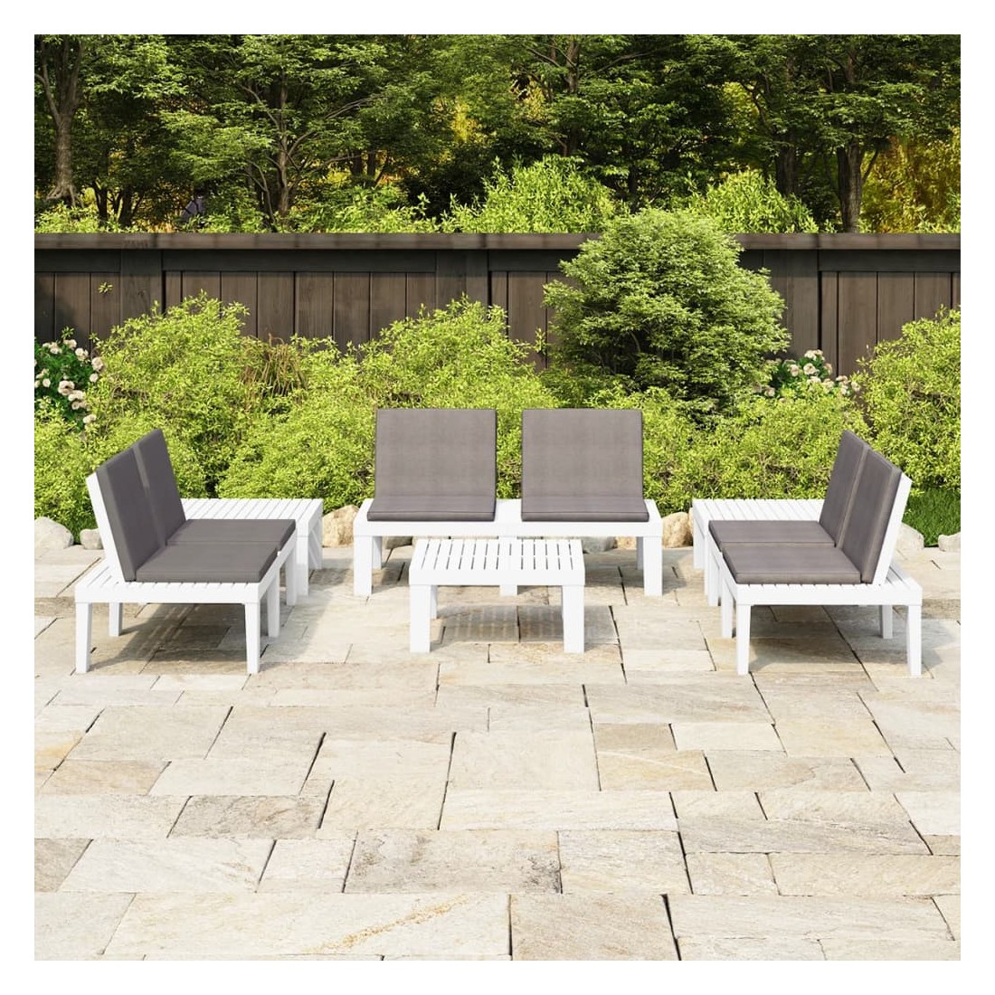 Ce salon de jardin est un excellent choix pour vous détendre et profiter du beau temps, faire une sieste ou discuter avec votre famille ou vos amis. L’ensemble de salon de jardin est en plastique, ce qui le rend facile à nettoyer et stable. Avec son dessus robuste, la table est idéale pour garder la nourriture et les boissons à portée de main. Le dossier et les coussins ajoutent au confort du banc.