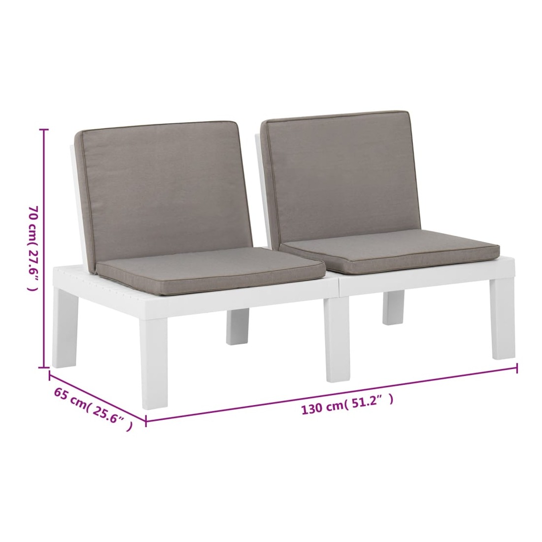 - Dimensions du banc : 130 x 65 x 70 cm (l x P x H)