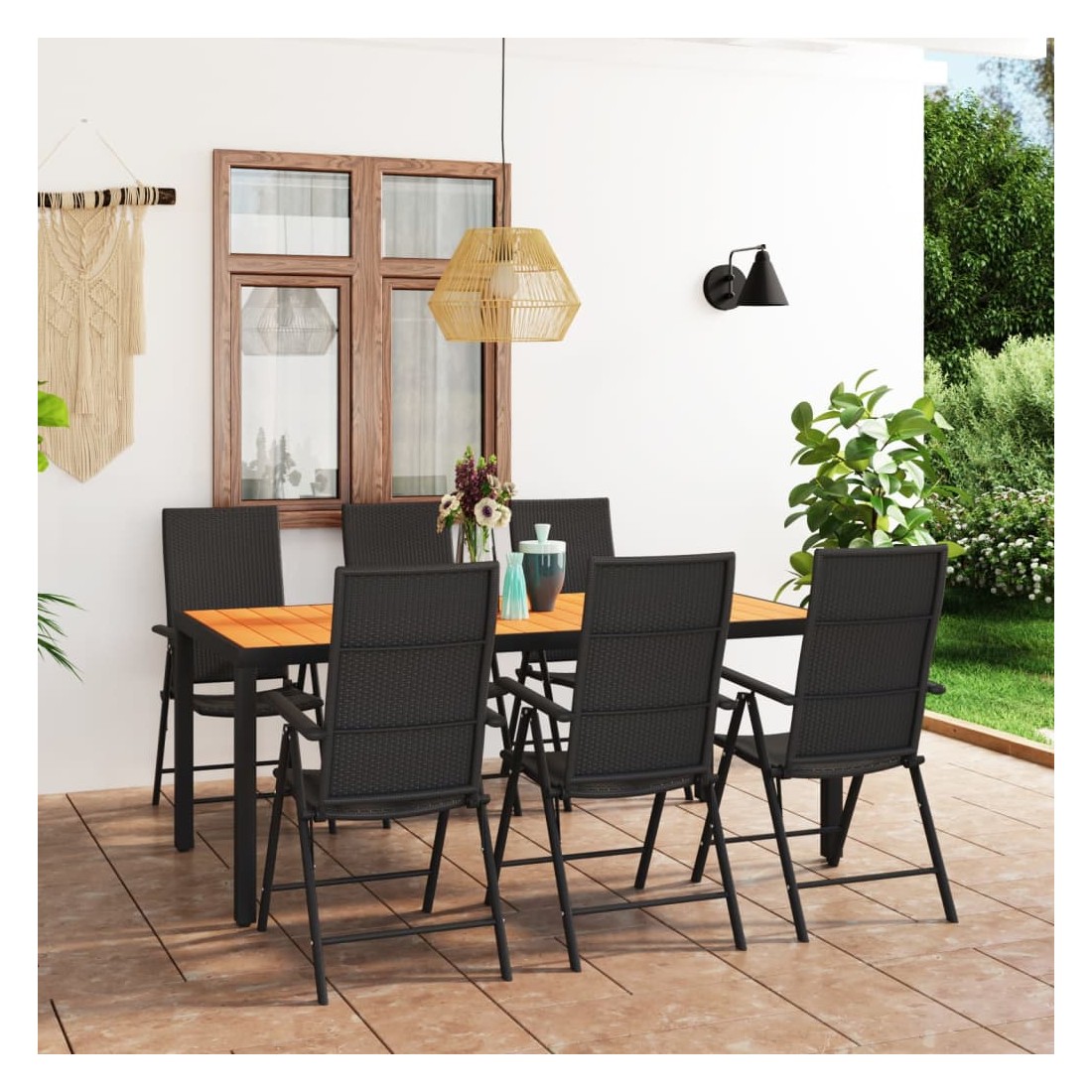 Ensemble à manger de jardin 7 pcs noir et marron