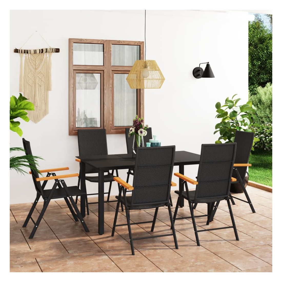 Cet ensemble à manger de jardin est un excellent choix pour votre jardin, patio ou terrasse. La chaise de jardin est en résine tressée, ce qui la rend résistante aux intempéries et durable. Les accoudoirs en WPC marron ajoutent au look élégant des chaises. La table dispose d'un dessus de table en verre avec une ligne simple, facile à nettoyer et adapté à une utilisation en plein air. Les cadres en aluminium assurent également la stabilité et la robustesse de cet ensemble. Grâce à sa construction légère, cet ensemble de meubles et facile à déplacer. Remarque : nous vous recommandons de couvrir le mobilier pendant la pluie, la neige ou le gel.