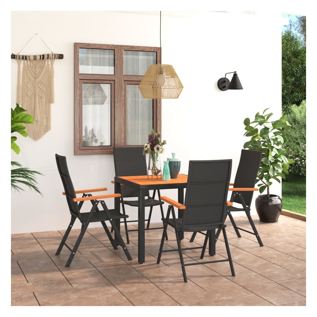 Ensemble à manger de jardin 5 pcs noir et marron