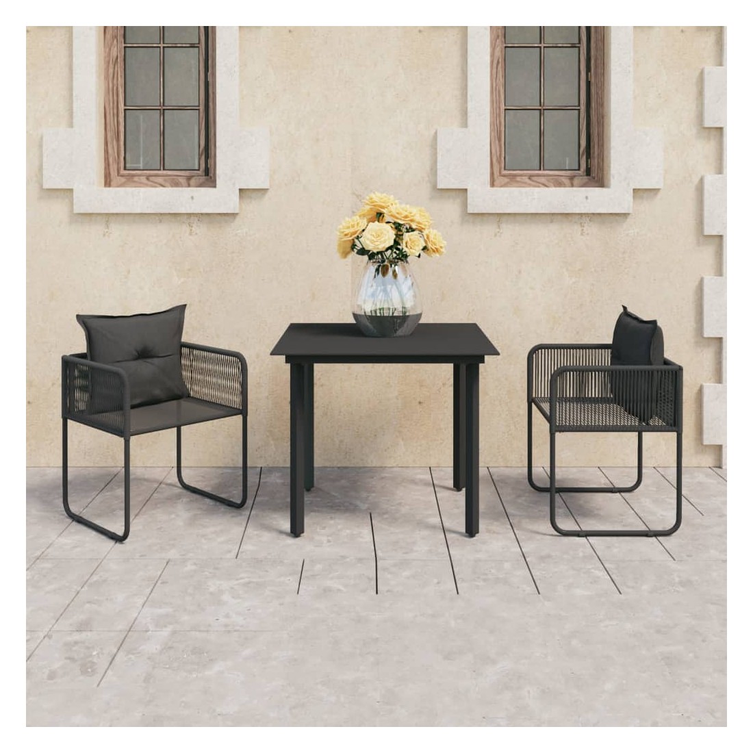 Ensemble à manger de jardin 3 pcs PVC résine tressée noir