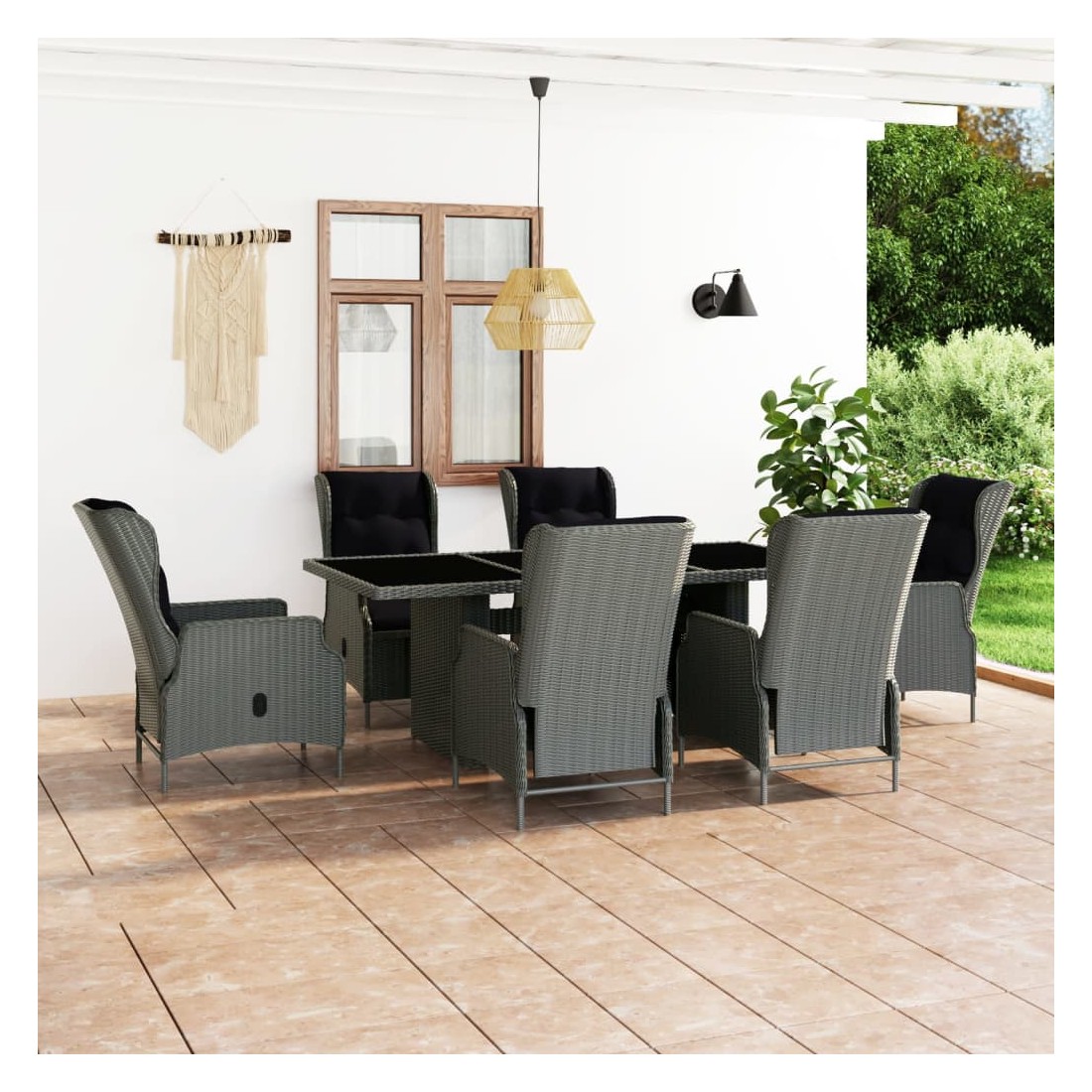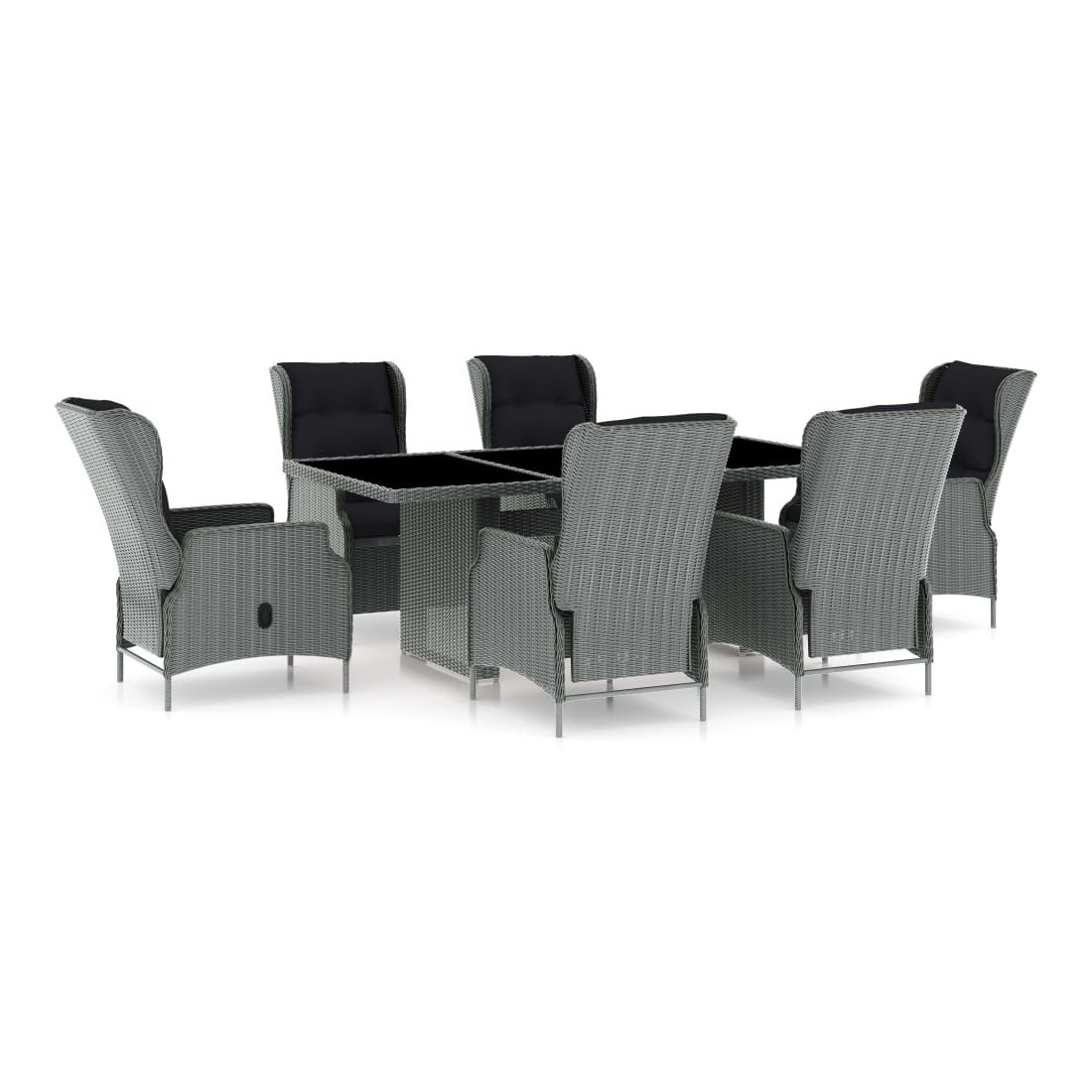 Cet ensemble à manger d'extérieur est une combinaison parfaite de style et de fonctionnalité et est destiné à être le point de mire de votre jardin, balcon ou patio. L’ensemble de meubles est fait de résine tressée ronde légère et peu exigeante d’entretien, ce qui le rend parfait pour une utilisation à l'extérieur, facile à nettoyer avec un chiffon humide. Grâce à sa structure en acier enduit de poudre, les fauteuils et la table sont stables et durables. Le dessus en verre ajoute une touche de luxe à votre espace extérieur, parfait pour dîner ou placer des objets décoratifs. Les coussins bien rembourrés ajoutent du confort supplémentaire pendant votre temps de détente. La housse de coussin est équipée d'une fermeture éclair, amovible et lavable. Grâce au mécanisme de levage à gaz, le dossier est également réglable pour s’adapter à vos positions. En appuyant sur le bouton sur le côté, le dossier peut s’incliner, pour une position couchée confortable. Remarque : Nous vous recommandons de couvrir l'ensemble pendant la pluie, la neige ou le gel.