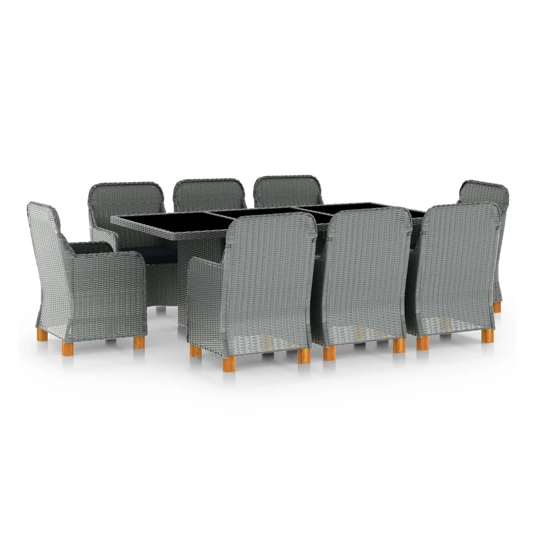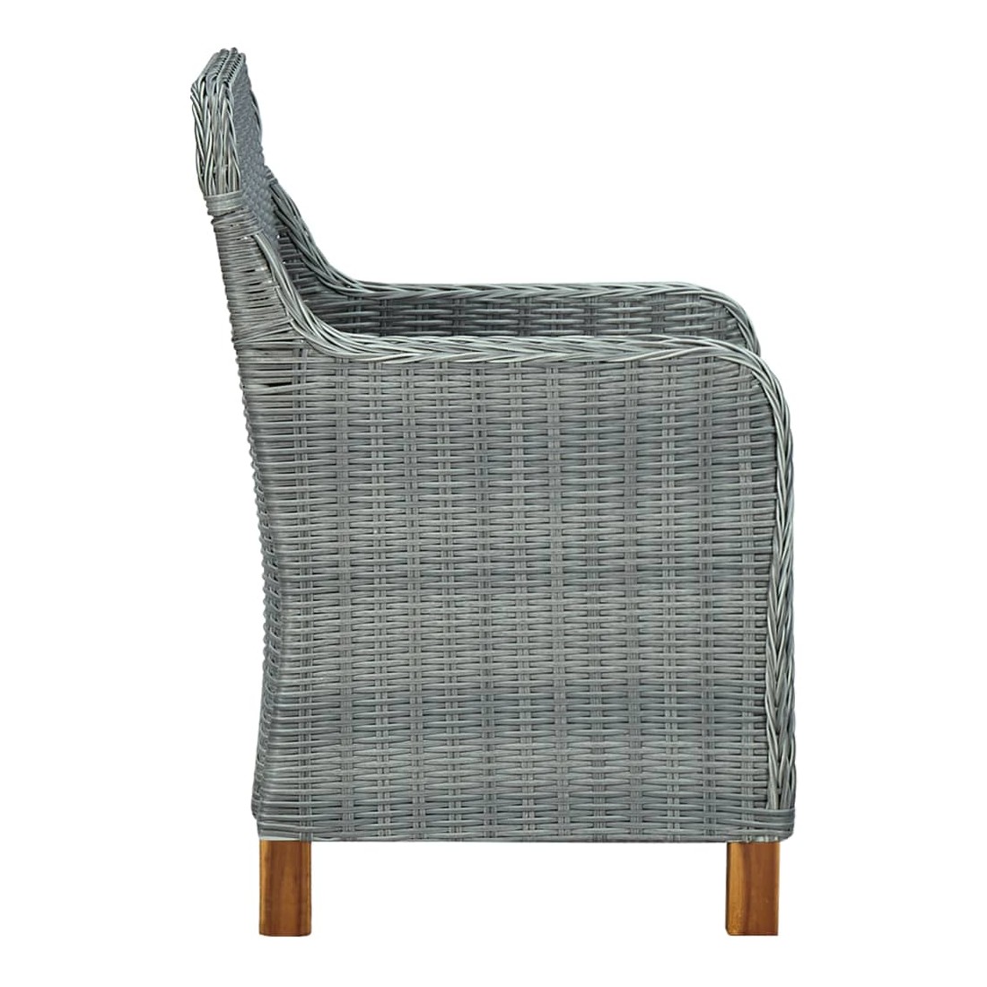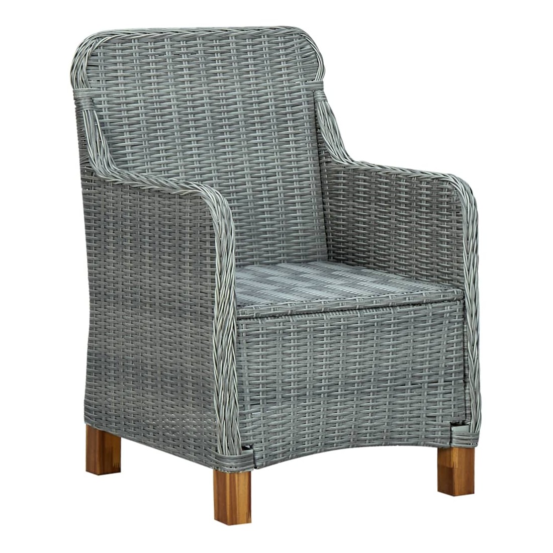 Cet ensemble à manger d'extérieur est une combinaison parfaite de style et de fonctionnalité et est destiné à être le point de mire de votre jardin, balcon ou patio. L’ensemble de meubles est fait de résine tressée ronde légère et peu exigeante d’entretien, ce qui le rend parfait pour une utilisation à l'extérieur, facile à nettoyer avec un chiffon humide. Grâce à la structure en acier enduit de poudre, les fauteuils et la table sont stables et durables. Le dessus de table solide est parfait pour placer ou afficher vos différents essentiels. Les coussins bien rembourrés ajoutent du confort supplémentaire pendant votre temps de détente. La housse de coussin est équipée d'une fermeture éclair, amovible et lavable. De plus, les pieds en bois d’acacia massif ajoutent à la robustesse et à la stabilité des chaises. Cet ensemble de meubles est facile à déplacer grâce à la construction légère. Remarque : Nous vous recommandons de couvrir l'ensemble pendant la pluie, la neige ou le gel.