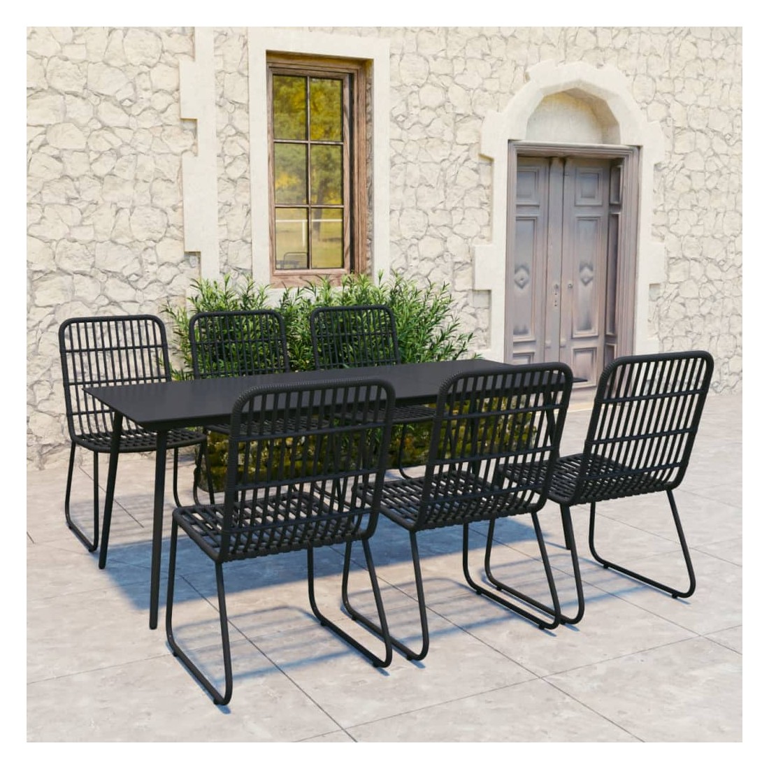 Ensemble à manger d'extérieur 7 pcs résine tressée et verre