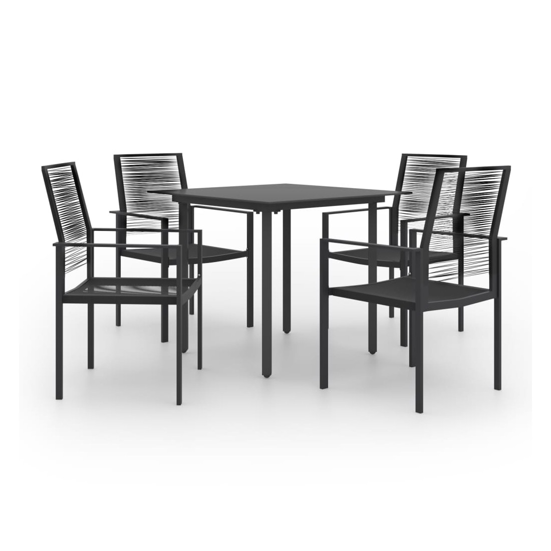 Créez une esthétique convaincante et uniforme dans votre espace extérieur avec cet ensemble de salle à manger de jardin ! La table et les chaises sont dotées de cadres en acier enduit de poudre, ce qui les rend robustes et stables. Le dessus de table en verre le rend également facile à nettoyer et résistant aux intempéries. Cette table d’extérieur est stable, durable et résistante à la rouille. Grâce au rotin creux en PVC résistant à l’eau, les chaises de jardin sont robustes, faciles à entretenir et adaptées à une utilisation quotidienne en extérieur. De plus, le dossier ajoute également un confort d’assise supplémentaire à la chaise. Remarque : afin de prolonger la durée de vie des meubles d'extérieur, nous vous recommandons de les protéger avec une housse imperméable.