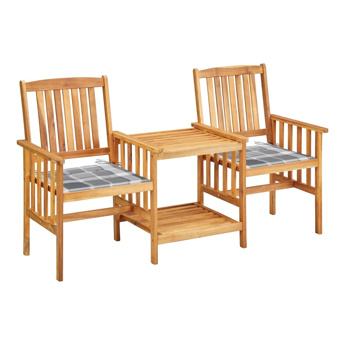 Chaises de jardin avec table à thé et coussins Acacia solide