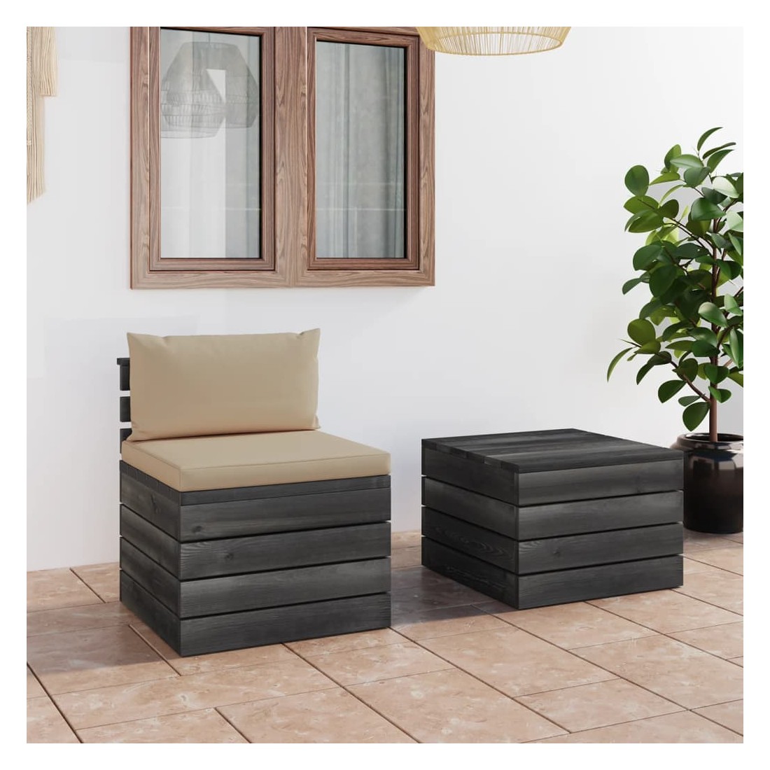 Salon palette de jardin 2 pcs avec coussins Bois de pin massif