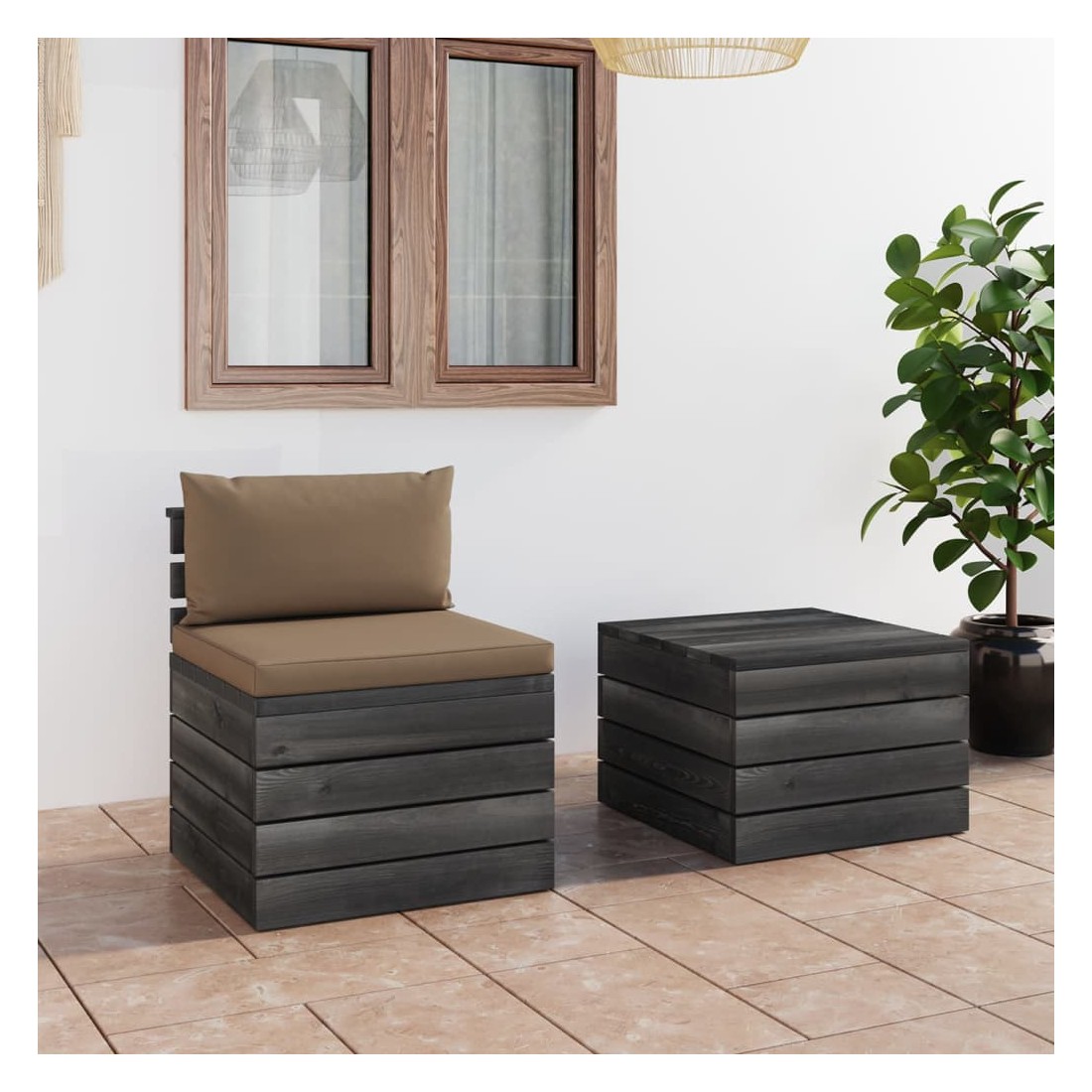 Salon palette de jardin 2 pcs avec coussins Bois de pin massif