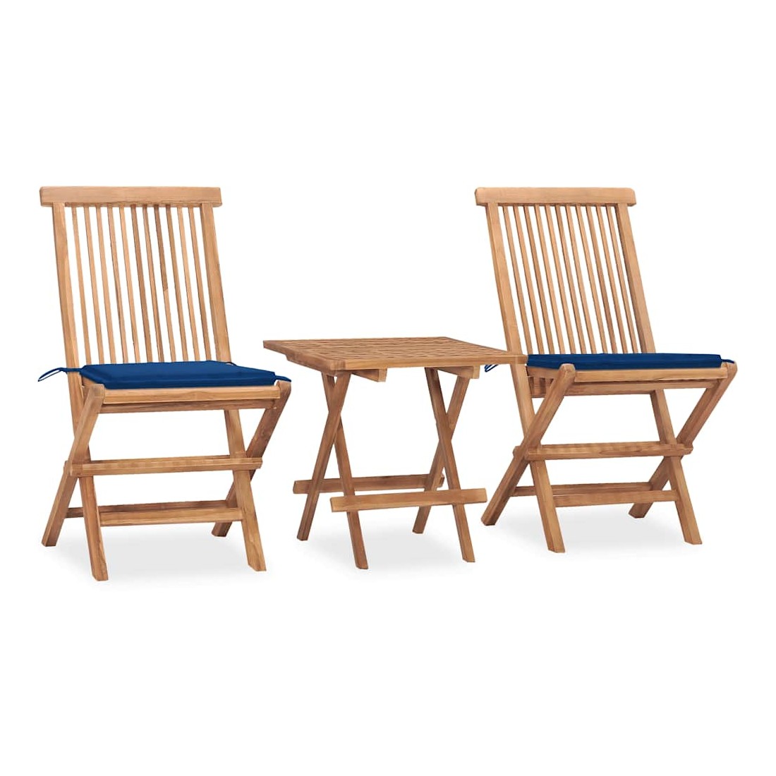 Ensemble à manger d'extérieur pliable avec coussin 3 pcs Teck