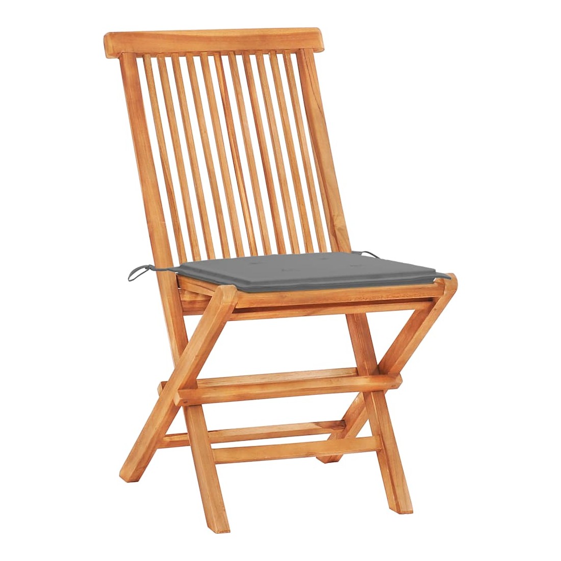 Ensemble de bistro 3 pcs avec coussins gris Bois de teck massif