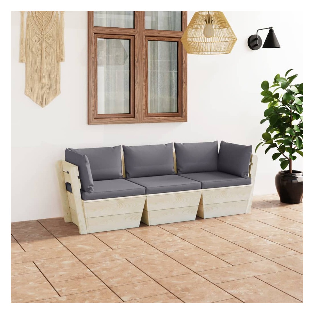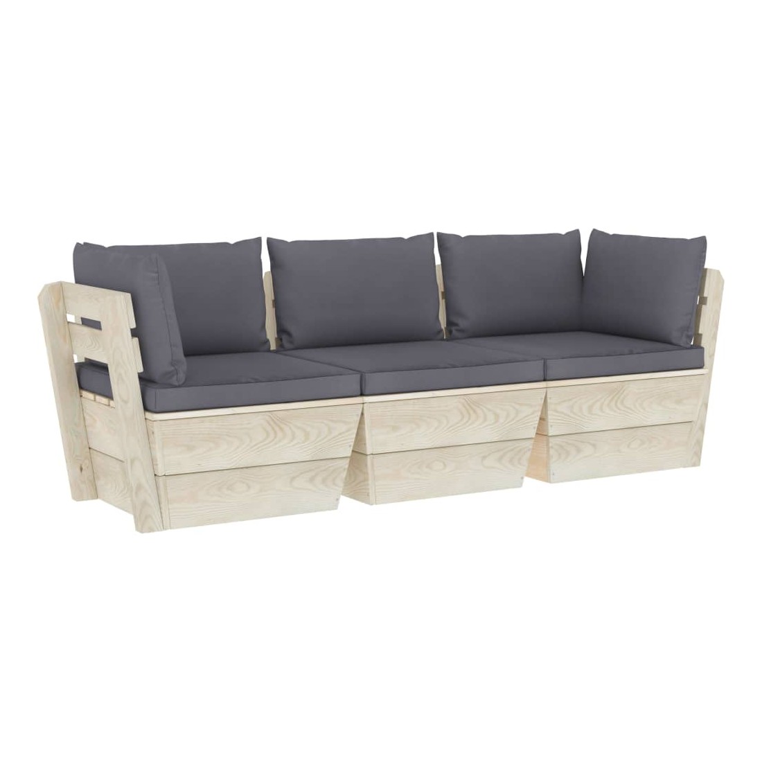 Canapé palette à 3 places de jardin avec coussins Bois d'épicéa
