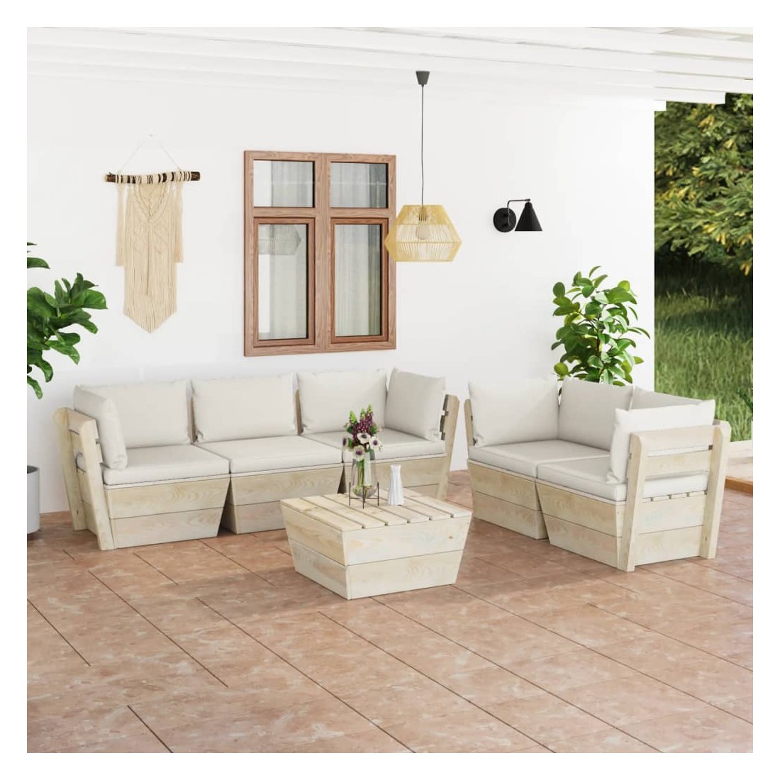 Salon de jardin palette 6 pcs avec coussins Épicéa imprégné