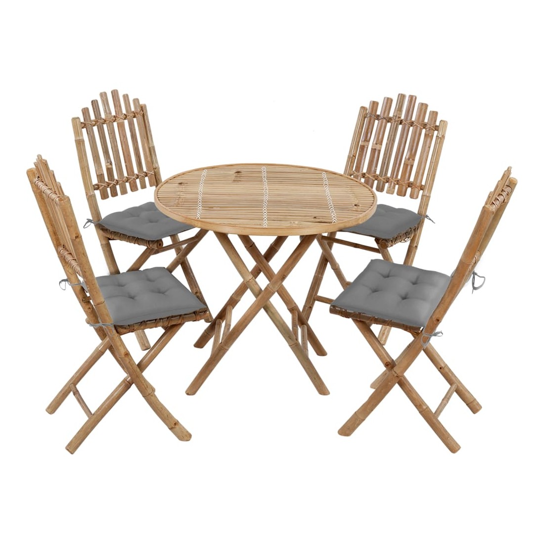 Ensemble à manger d'extérieur pliable 5pcs avec coussins Bambou