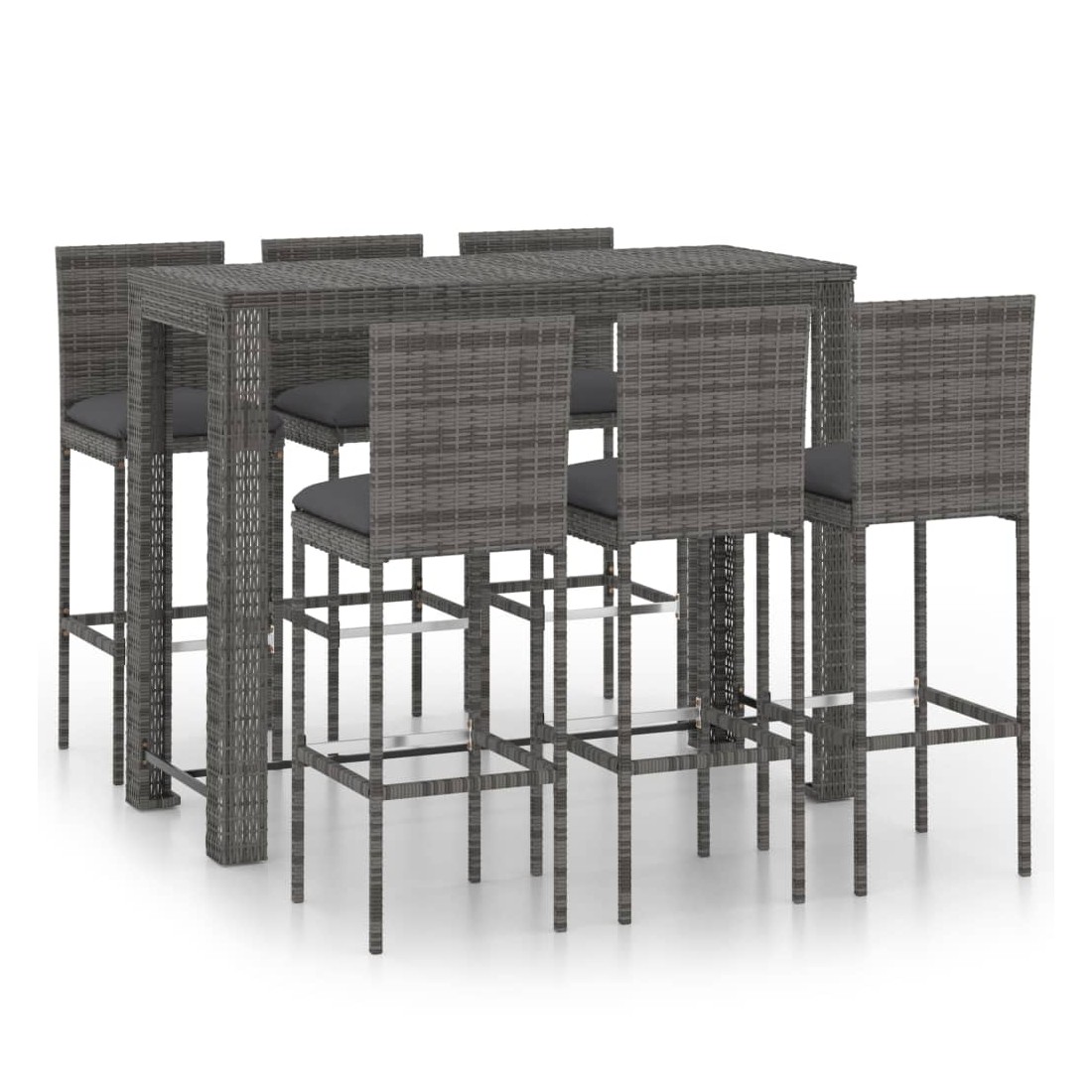 Ensemble de bar d'extérieur 7 pcs coussins anthracite Rotin
