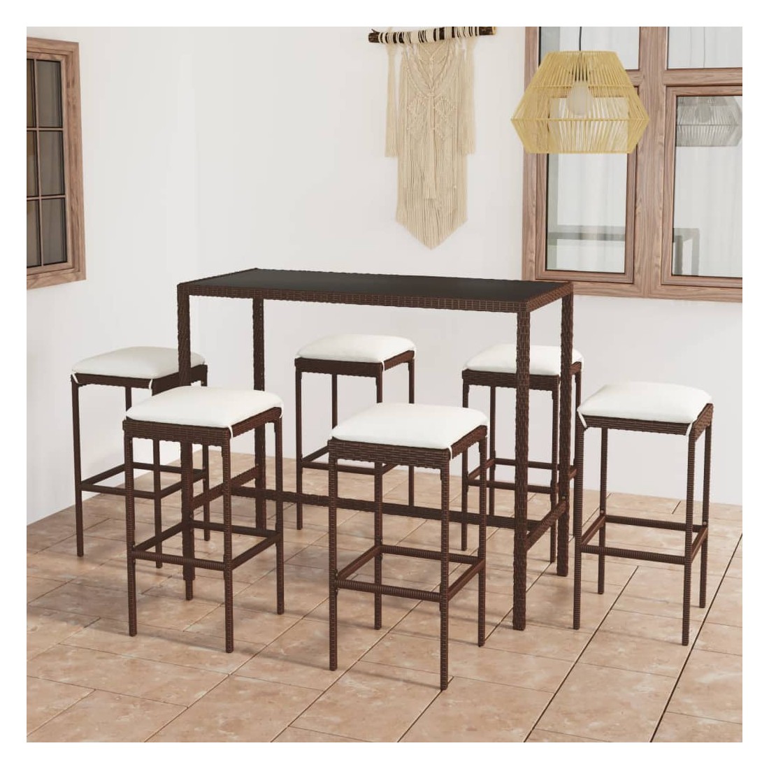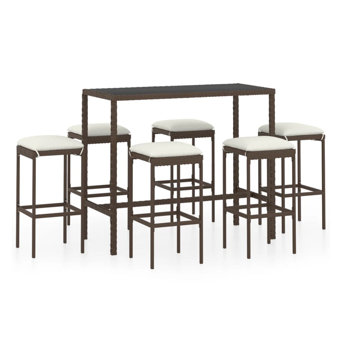 Ensemble de bar de jardin 7 pcs coussins Résine tressée Marron
