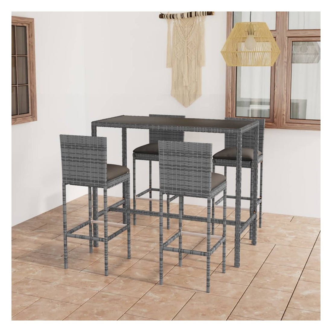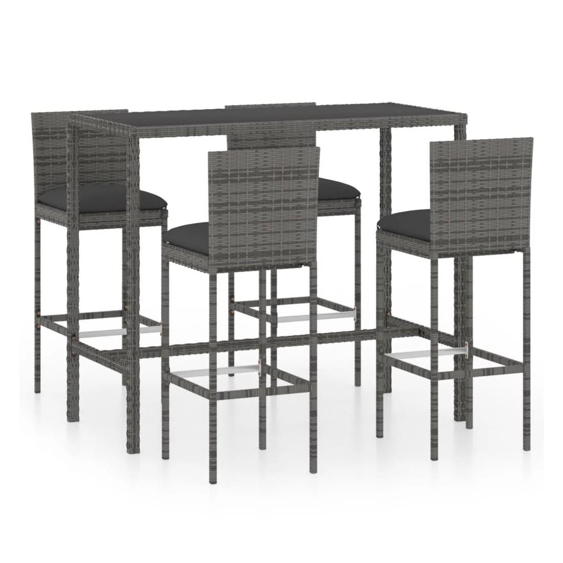 Ensemble de bar de jardin 5 pcs et coussins Résine tressée Gris