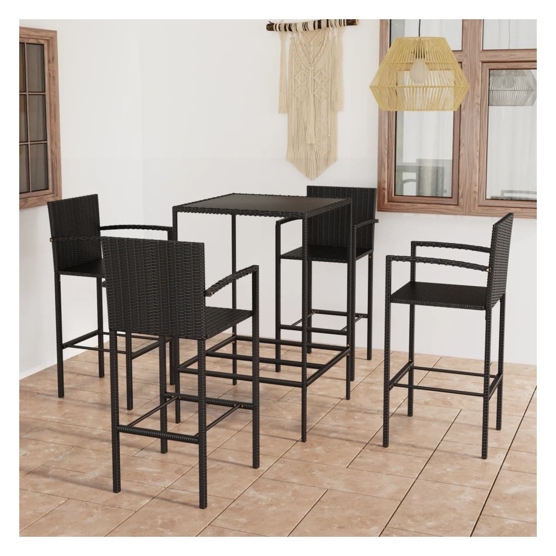 Ensemble de bar de jardin 5 pcs Résine tressée Noir
