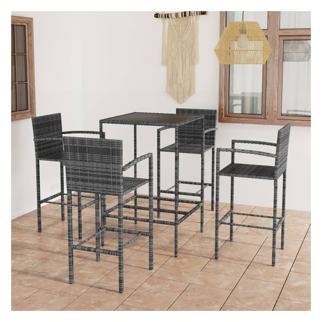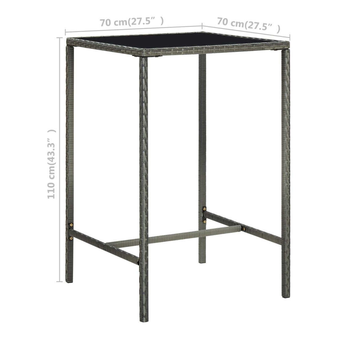 Cet ensemble élégant de bar de jardin vous permet de passer des moments agréables et confortables avec votre famille et vos amis. Dotée d’un cadre en acier enduit de poudre recouvert de résine tressée résistante à l’eau, cette table de comptoir garantit des années d’utilisation en extérieur. De plus, le dessus de table en verre trempé facilite le nettoyage. Les tabourets ont une construction solide de cadre en acier et sont fabriqués en résine tressée résistante aux intempéries, ce qui garantit leur stabilité et leur facilité de déplacement. Le dossier, l'accoudoir et le repose-pied intégré ajoutent également au confort d'assise du tabouret. Remarque : afin de prolonger la durée de vie des meubles d'extérieur, nous vous recommandons de les protéger avec une housse imperméable.