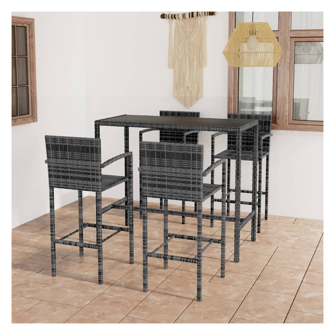 Cet élégant ensemble de bar de jardin offre un endroit agréable et confortable afin que vous puissiez profiter du temps avec votre famille et vos amis. Cette table de comptoir dispose d’un cadre en acier enduit de poudre recouvert de résine tressée résistante à l’eau, assurant des années d’utilisation à l’extérieur. De plus, le dessus de table en verre trempé facilite le nettoyage. Les tabourets ont un solide cadre en acier et sont fabriqués en résine tressée résistante aux intempéries, ce qui garantit leur stabilité et leur facilité de déplacement. Le dossier, l'accoudoir et le repose-pied intégré ajoutent également au confort d'assise du tabouret. Remarque : afin de prolonger la durée de vie des meubles d'extérieur, nous vous recommandons de les protéger avec une housse imperméable.