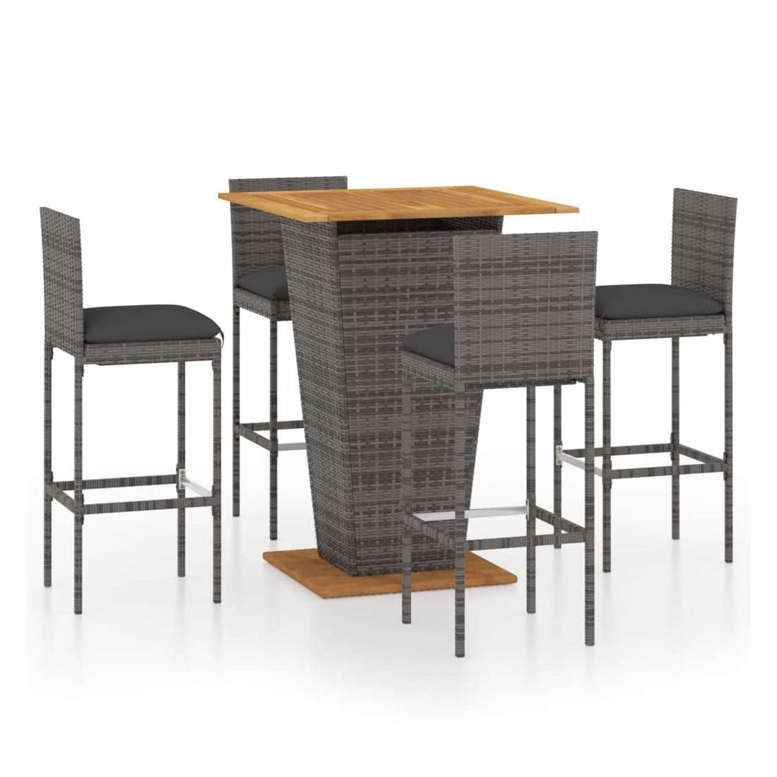 Ensemble de bar de jardin 5 pcs et coussins Résine tressée Gris