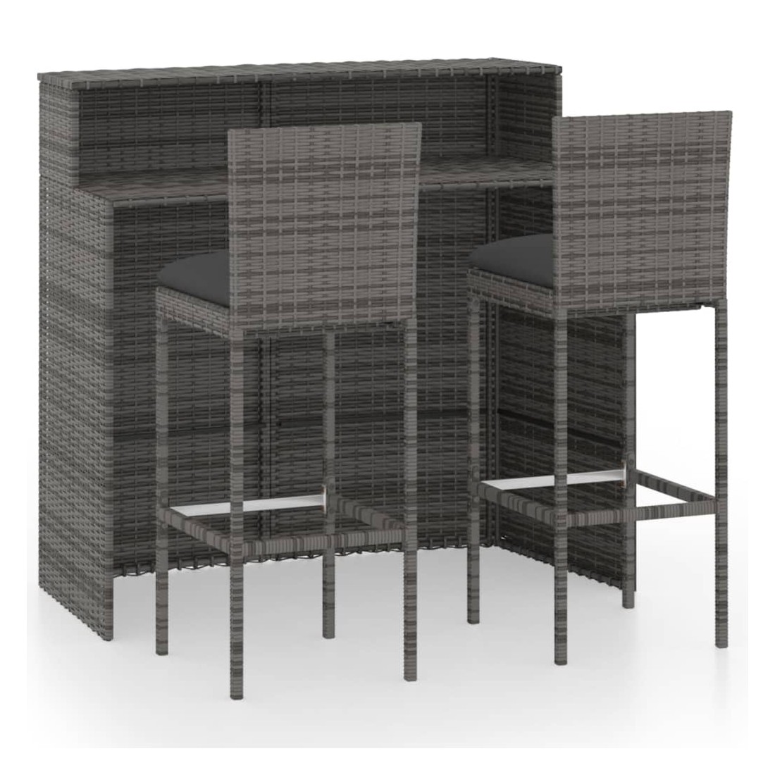 Ensemble de bar de jardin avec coussins 3 pcs Gris