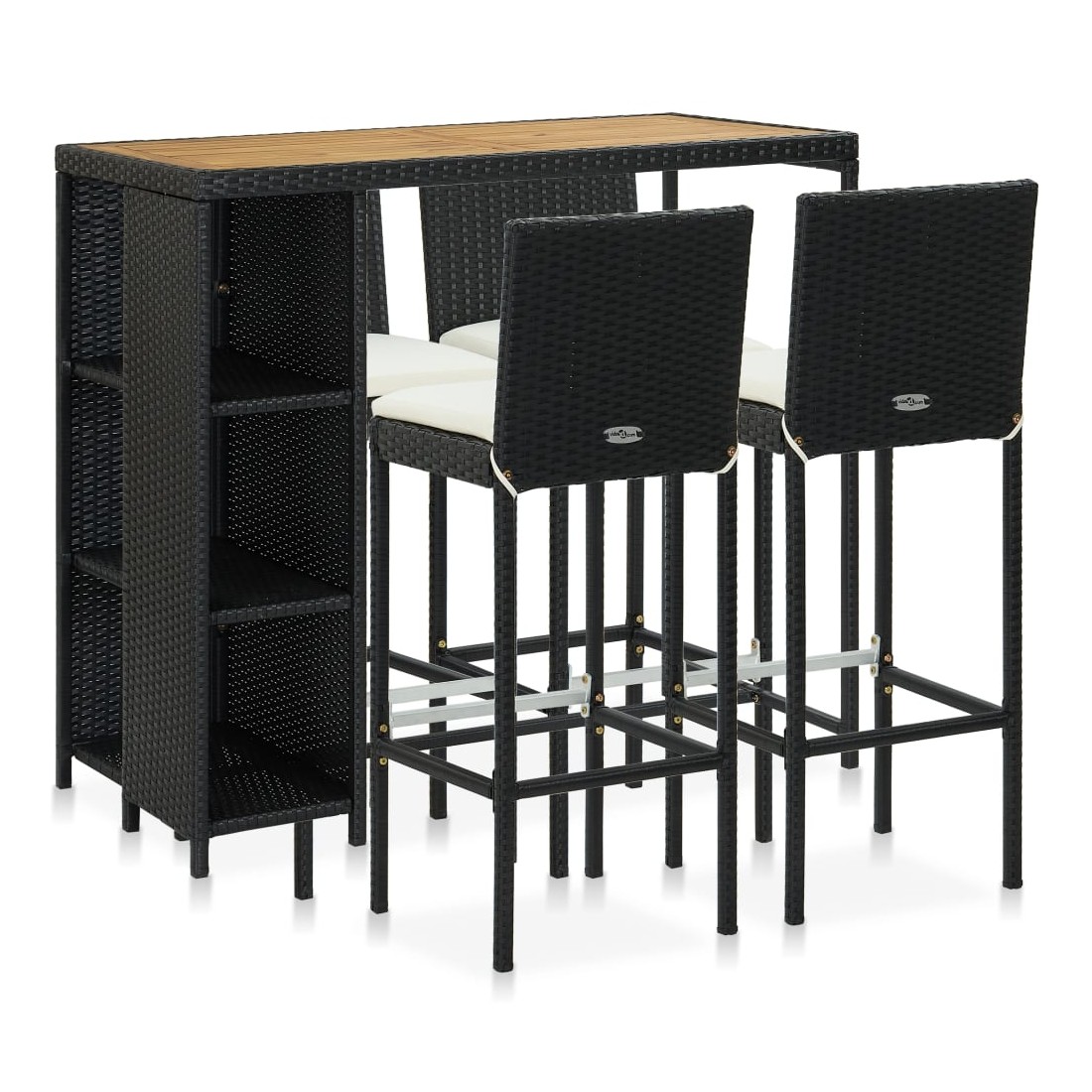 Ensemble de bar de jardin 5 pcs et coussins Résine tressée Noir