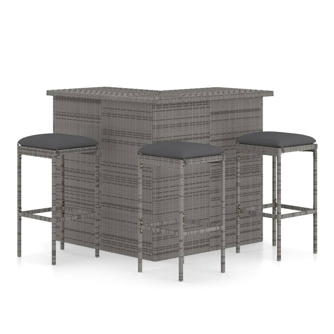 Cet ensemble de bar de jardin a un design élégant et sera le point de mire de votre jardin, patio ou terrasse. Fabriqué en résine tressée résistante aux intempéries et imperméable, cet ensemble de bar est facile à nettoyer, résistant à l'usure et adapté à une utilisation quotidienne. Le cadre en acier enduit de poudre rend la table et les tabourets très robustes et durables. Grace à la construction légère, tous les articles sont faciles à déplacer. Les coussins de siège amovibles et épais sont très confortables. Les housses des coussins avec fermetures éclair peuvent être facilement enlevées et lavées. Remarque : nous vous recommandons de couvrir l'ensemble pendant la pluie, la neige et le gel.