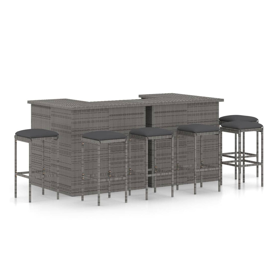 Cet ensemble de bar de jardin a un design élégant et sera le point de mire de votre jardin, patio ou terrasse. Fabriqué en résine tressée résistante aux intempéries et imperméable, cet ensemble de bar est facile à nettoyer, résistant à l'usure et adapté à une utilisation quotidienne. Le cadre en acier enduit de poudre rend la table et les tabourets très robustes et durables. Grace à la construction légère, tous les articles sont faciles à déplacer. Les coussins de siège amovibles et épais sont très confortables. Les housses des coussins avec fermetures éclair peuvent être facilement enlevées et lavées. Remarque : nous vous recommandons de couvrir l'ensemble pendant la pluie, la neige et le gel.