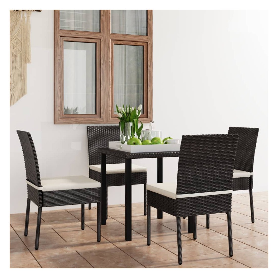 Cet ensemble de salle à manger de jardin est conçu pour être le point de mire de votre jardin ou patio ! Le cadre en acier rend cette table et ces chaises solides et stables. Comme l’ensemble est également léger, tous les articles sont faciles à déplacer et adaptés pour une utilisation à l’extérieur. Grâce à la résine tressée résistante aux intempéries et à l’eau, le mobilier d’extérieur est facile à nettoyer et durable. Les coussins de siège bien rembourrés et amovibles offrent un confort supplémentaire. Remarque : nous vous recommandons de couvrir l'ensemble pendant la pluie, la neige et le gel.