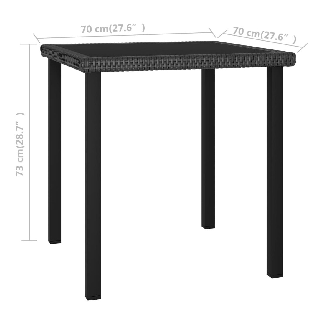 - Dimensions de la table : 70 x 70 x 73 cm (L x l x H)