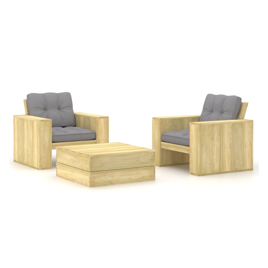 Salon de jardin 3 pcs avec coussins bois de pin imprégné