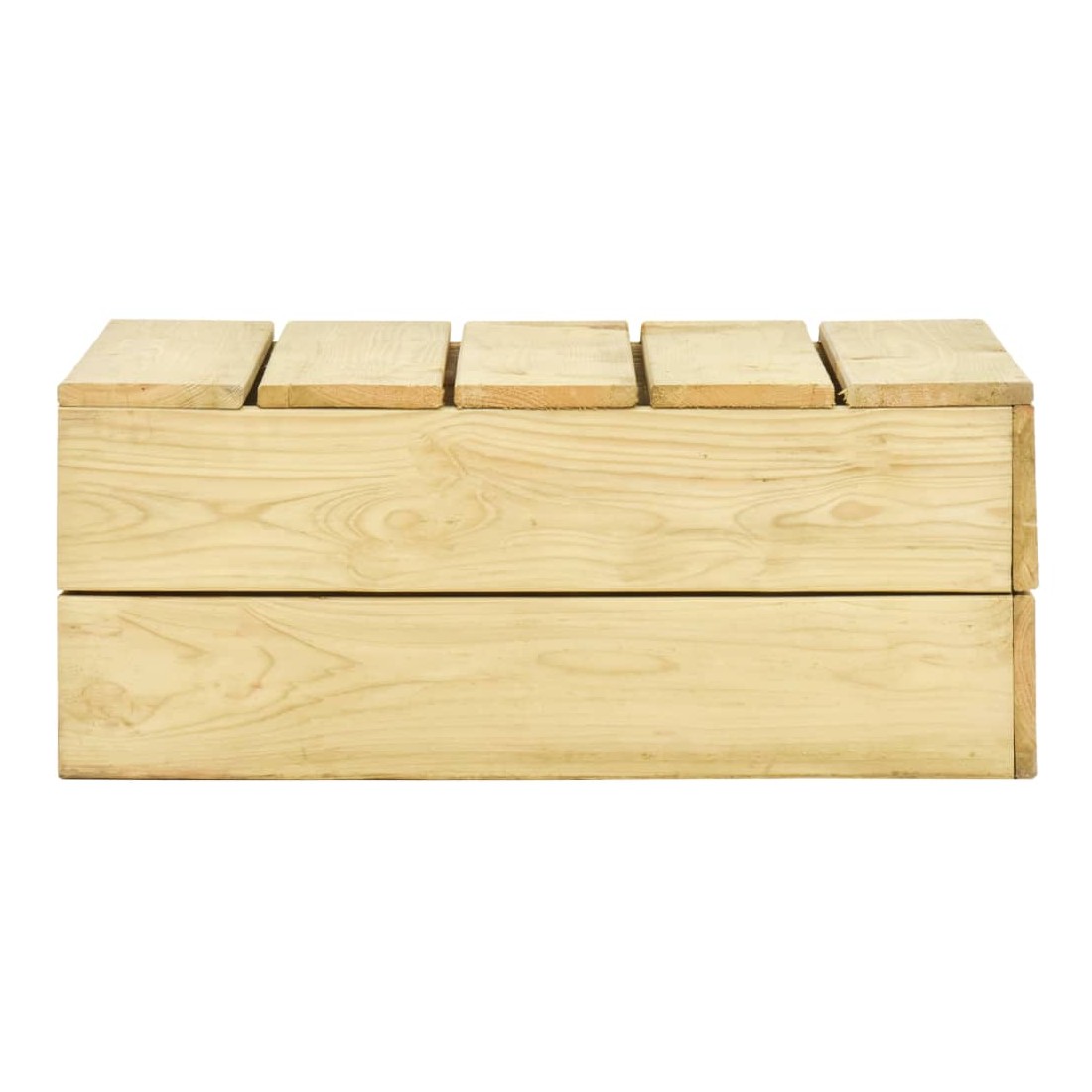 vidaXLCe salon de jardin est un choix idéal pour vous détendre, profiter du beau temps, faire une sieste ou discuter avec votre famille ou vos amis. Fabriqué en bois de pin imprégné, l’ensemble de meubles d'extérieur est durable, résistant aux intempéries et respectueux de l’environnement. Cet ensemble de meubles a une construction solide et nécessite peu d’entretien. Grâce à la tapisserie 100 % polyester et au rembourrage épais, les coussins inclus sont doux et offrent un confort optimal. Remarque : afin de prolonger la durée de vie des meubles d'extérieur, nous vous recommandons de les protéger avec une housse imperméable.