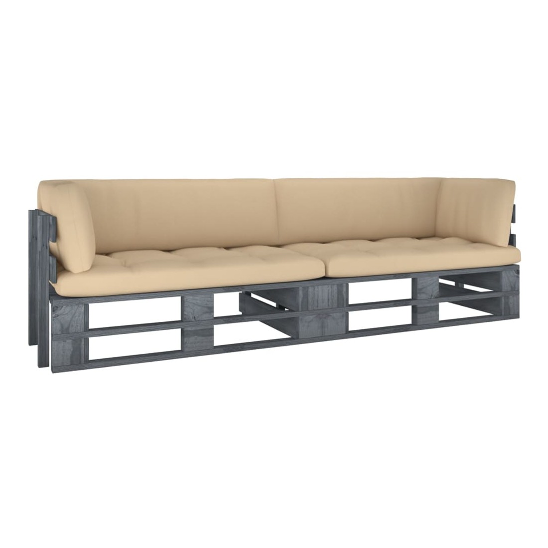 Canapé palette 2 places avec coussins Pin imprégné de gris