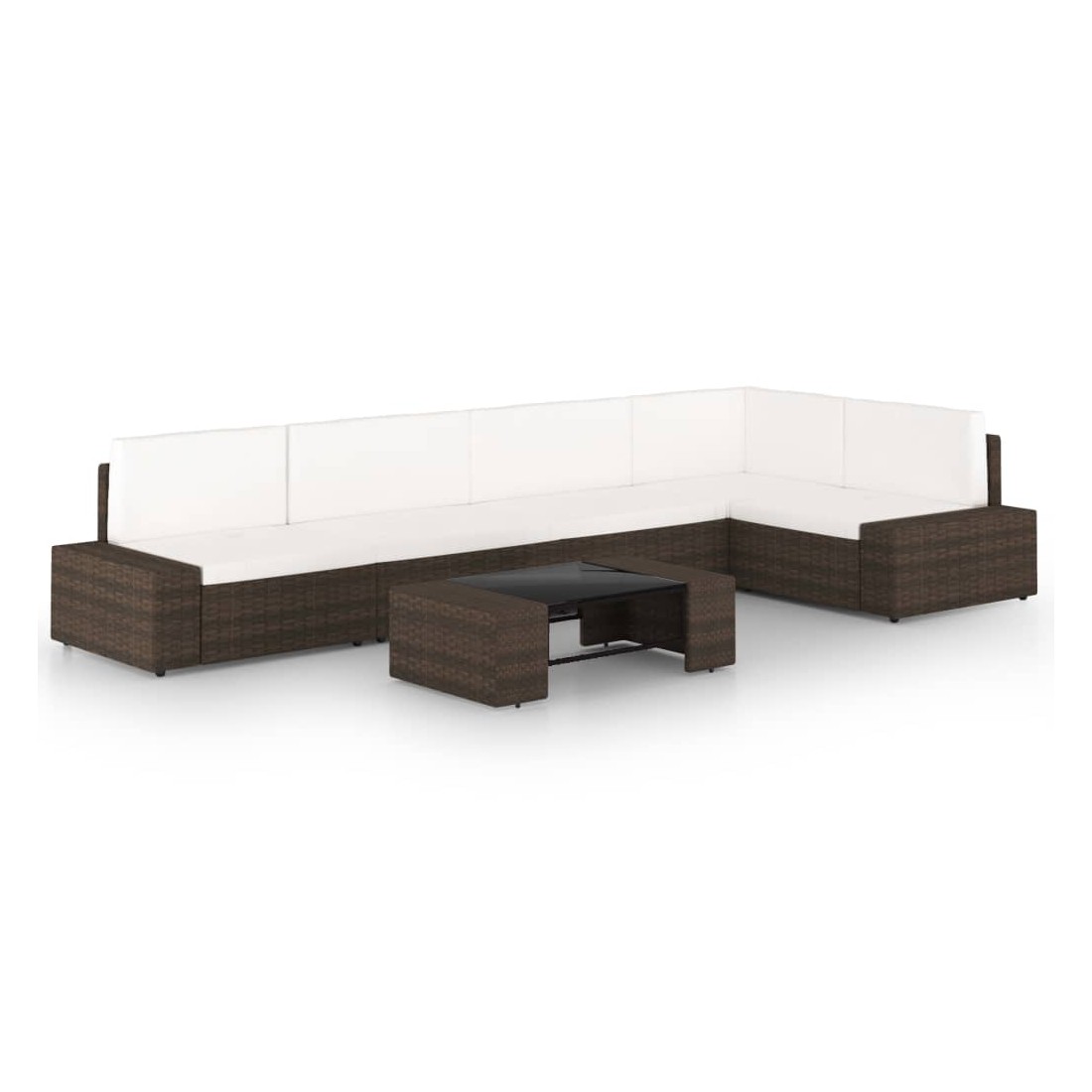 Salon de jardin 6 pcs avec coussins Marron Résine tressée