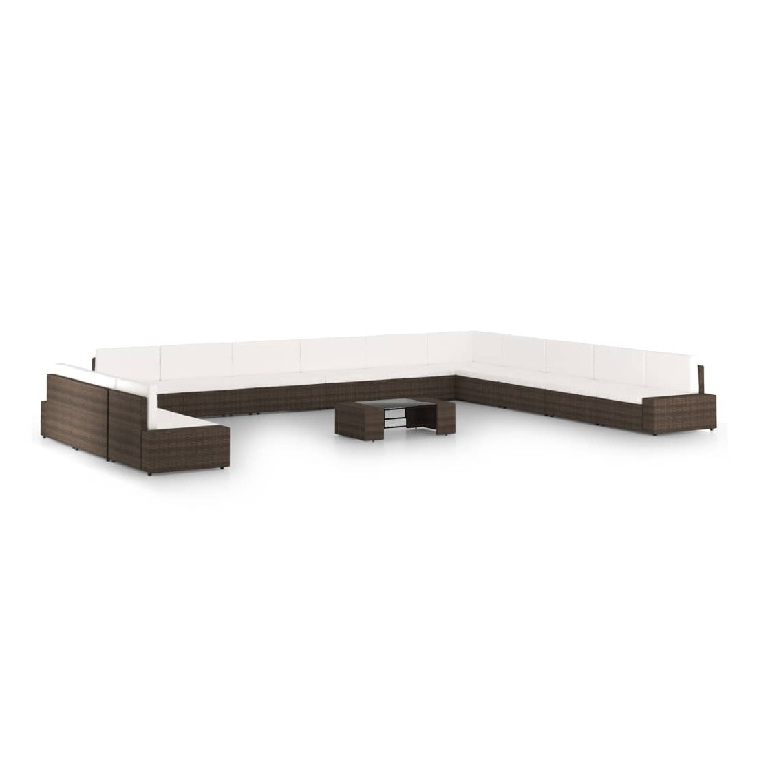 Salon de jardin 14 pcs avec coussins Marron Résine tressée