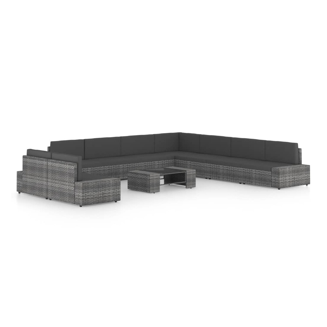 Salon de jardin 10 pcs avec coussins Gris Résine tressée